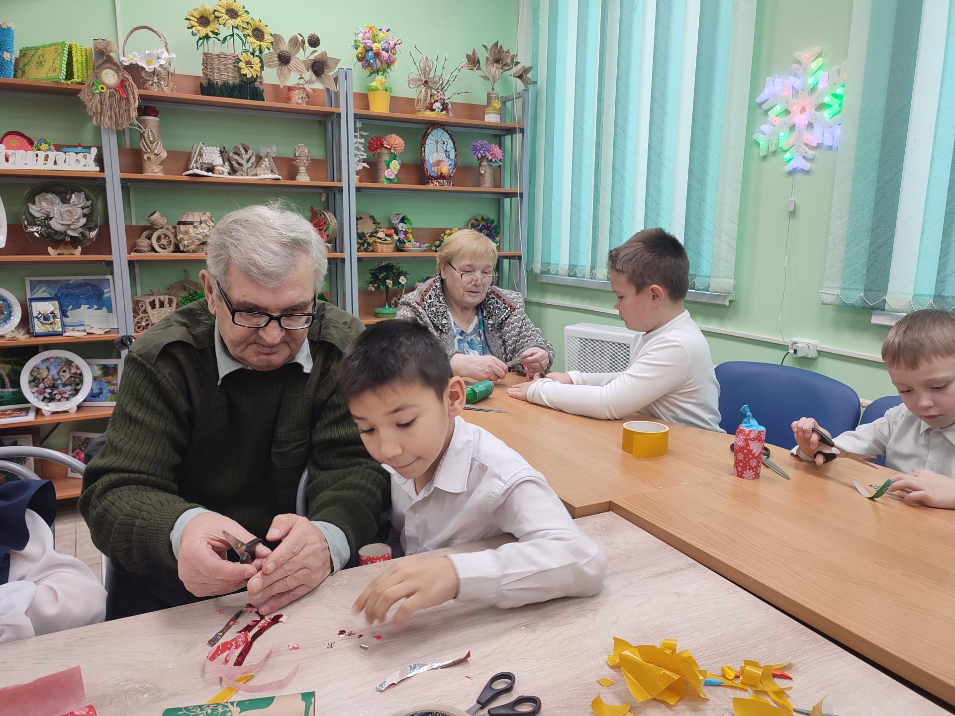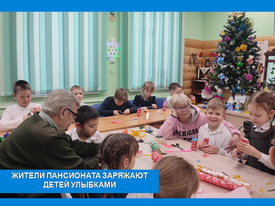 Сегодня двери Вязниковского Пансионата открылись для учеников 2-го класса Санаторной школы-интерната. Жители пансионата приготовили для них целую программу. Сначала они вместе со специалистом Будниковой Дарьей Дмитриевной провели в мастерской для ребят мастер-класс по изготовлению многоразовой хлопушки. Затем познакомили детей со своим творчеством, проведя по выставкам. Далее в каминном зале устроили небольшую фотосессию у новогодней фотозоны. Кульминацией встречи стал фейерверк из созданных хлопушек. По эмоциям и улыбкам детей можно было судить, что наши бабушки и дедушки настоящие «зажигалочки», способные дарить тепло и зажигать своим позитивом других. И главное, делают это они с превеликим удовольствием!