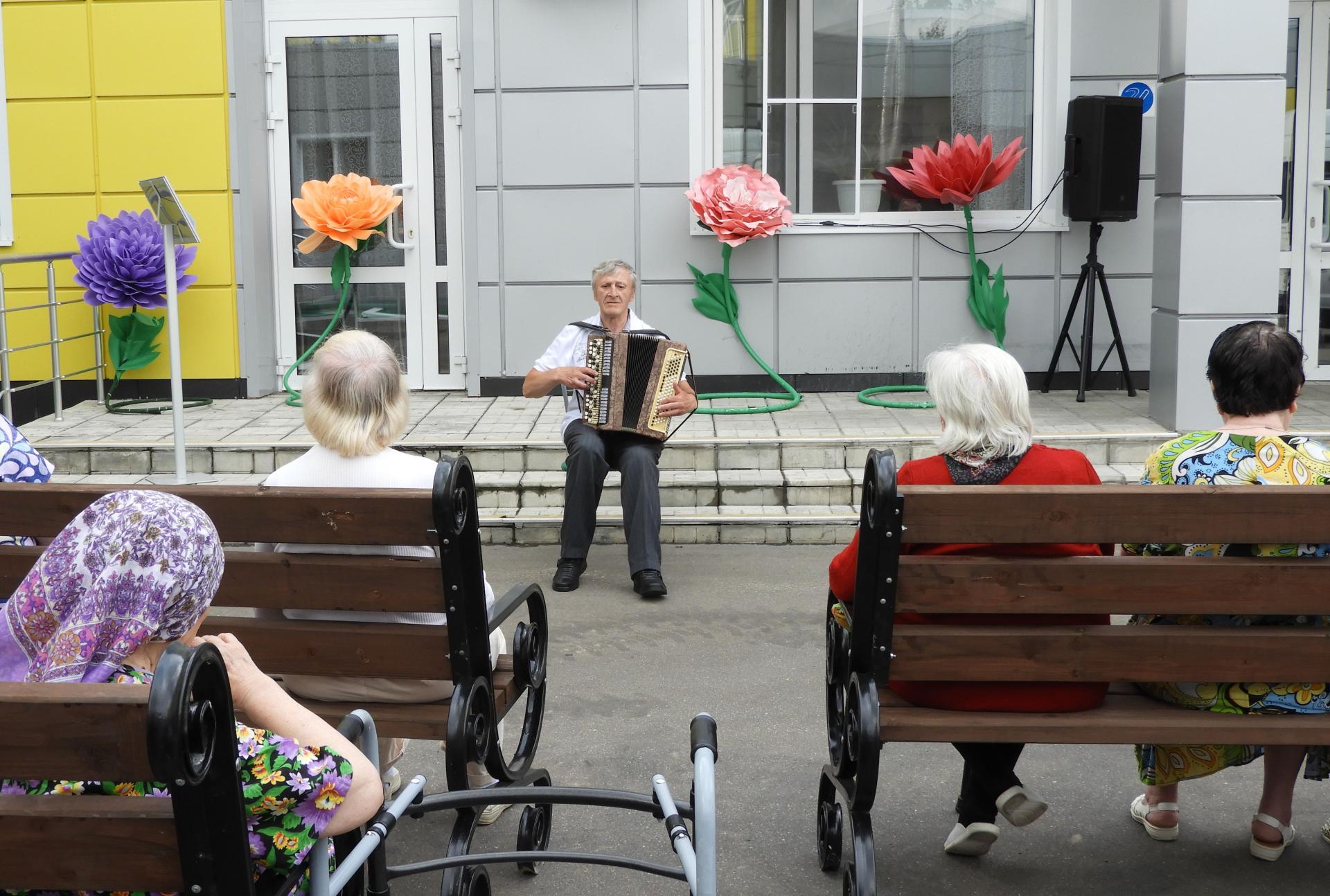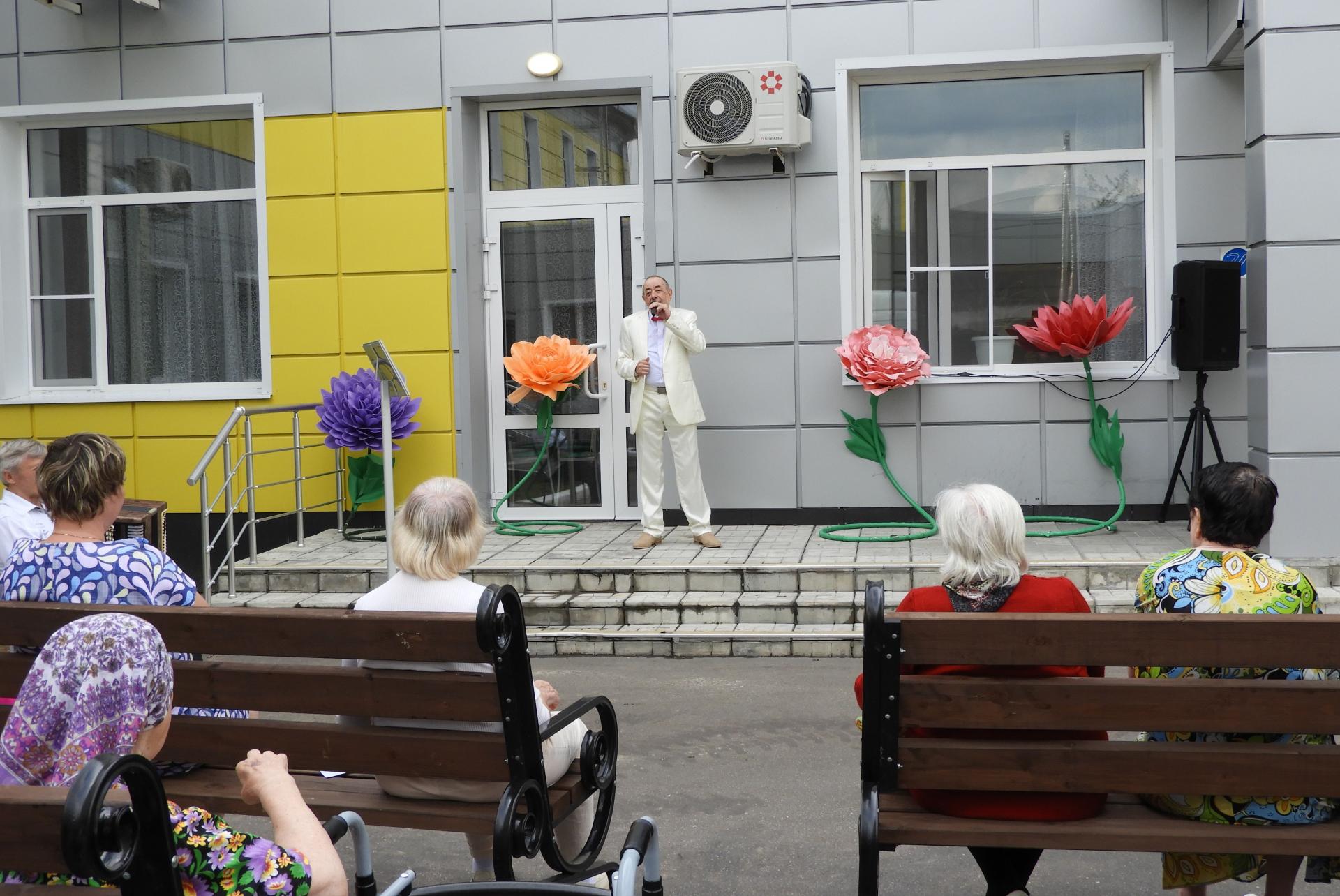 Концертная программа «О любви немало песен сложено» была подготовлена серебряными волонтёрами Пансионата. В их исполнении прозвучали песни «Что так сердце растревожено», «Живёт моя отрада», «Ой, цветёт калина», «Любовь-кольцо», «Эхо любви», «Три года ты мне снилась» и др., а так же стихотворение Р. Рождественского «Всё начинается с любви». Зрители, наслаждаясь летним тёплым воздухом, музыкой, с удовольствием пели вместе с артистами, некоторые танцевали, одним словом радовались приятному времяпрепровождению в хорошей и дружной компании.