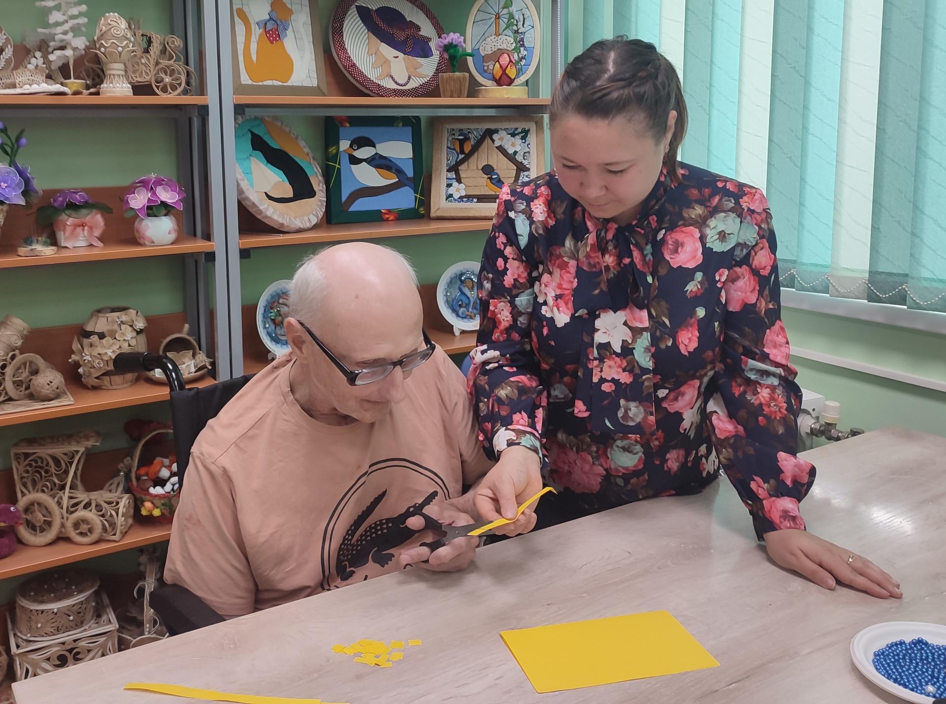 На реабилитационных занятиях с жителями Пансионата с нарушением когнитивных функций большое внимание уделяется мелкой моторике рук.