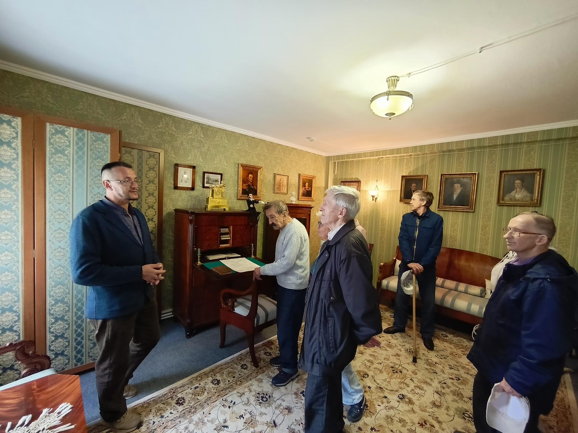 Сегодня жители пансионата отправились на экскурсию в рамках реализации социального туристического и культурно-исторического проекта «СТАРТуем!» в "Усадьбу двух генералов". Это один из самых молодых музейных комплексов во Владимирской области, созданный на основе старинной дворянской усадьбы Леванидовых-Юкичевых в посёлке Павловском Ковровского района. Как оказалось генералы здесь жили и владели Павловским в разное время . На стенах при входе - гербы фамилий, владевших Павловским: Татевы, Куракины, Воротынские, Голицыны, Салтыковы, Леванидовы, Юкичевы.