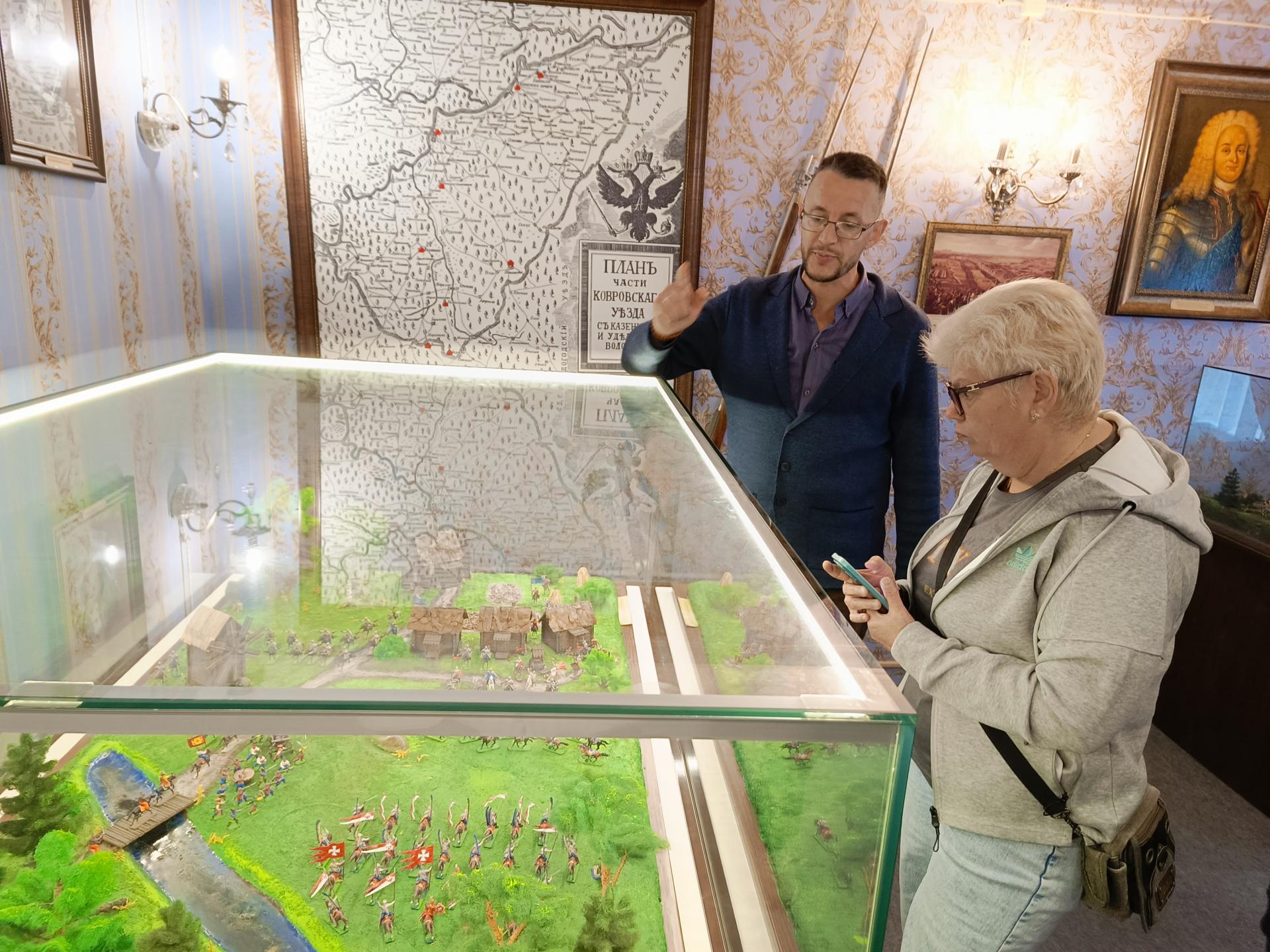 Впечатляют экспозиции комплекса: 1 экспозиция - "Страшись, о рать иноплеменных! России двинулись сыны..."Здесь рассказывается об участниках, полководцах (связанных с Ковровским уездом/районом). Помимо экскурсовода жителей встречала голограмма денщика генерала, реалистично рассказывающая о жизни и службе барина. Понравилось то, что разрешалось брать в руки оружие и посмотреть реконструкции сражений.