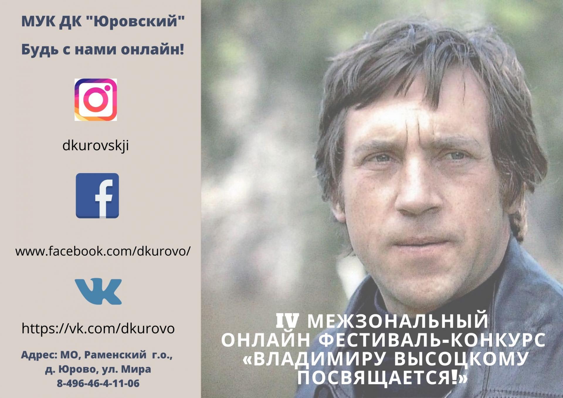 Пансионат им.Е.П.Глинки принял участие в 4 Межзональном онлайн фестивале- конкурсе «Владимиру Высоцкому посвящается!». Мероприятие, приурочено ко дню рождения В.С. Высоцкого.
