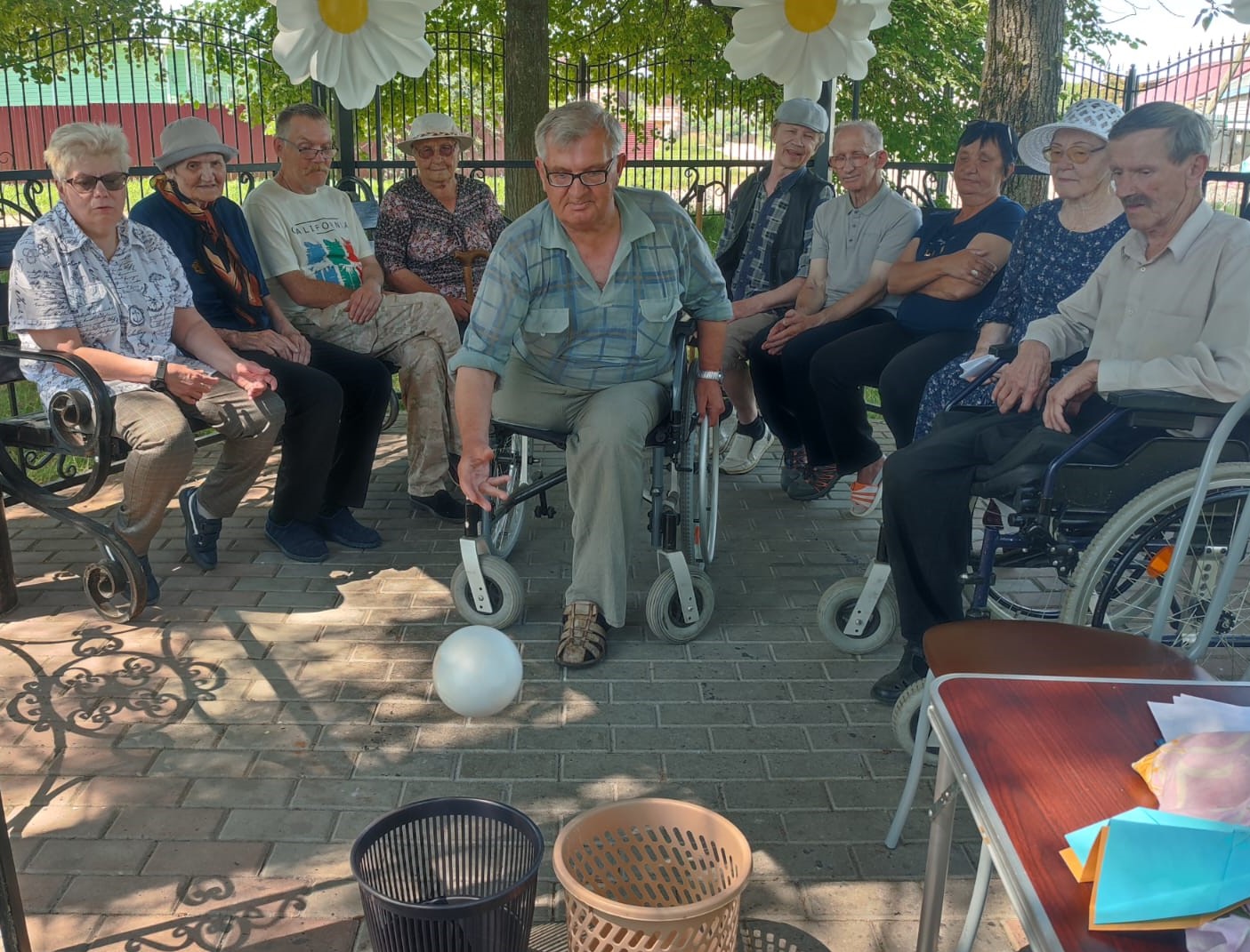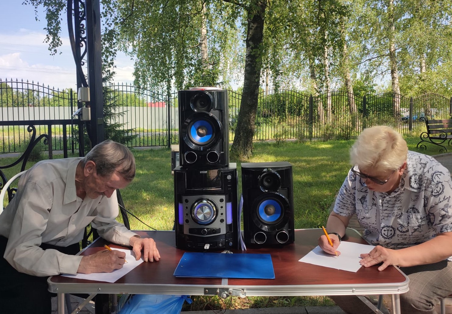 Укрывшись от знойного солнышка в одной из тенистых беседок, собрались участники игры. Музыка, доносившаяся из беседки, собрала и зрителей, которые разместились рядом на лавочках, с удовольствием наблюдая за игровым действом.