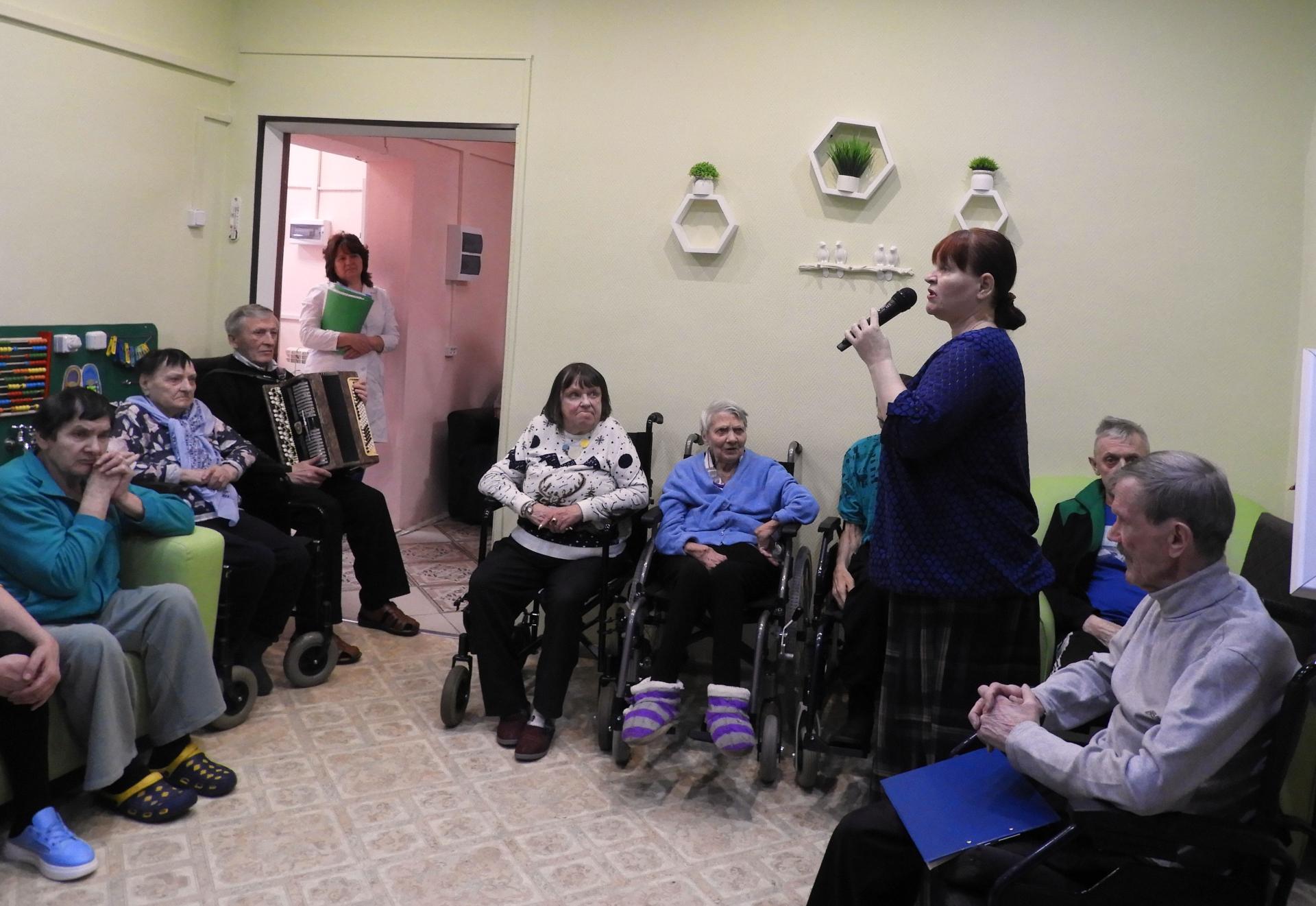 1 апреля серебряные волонтёры Вязниковского Пансионата, члены клуба добровольческой деятельности «ДоброSTAR», участники вокально-музыкальной студии «Гармония» провели для жителей отделения интенсивного ухода (с. Сарыево) весенний концерт «От всей души!». Артисты Пансионата дарили добро и радость с помощью прекрасных стихов, музыки и песен, которые быстро подхватывались зрителями. А подхватывались потому, как все очень знакомы и любимы, среди них – «А у нас во дворе», «Ах, судьба моя, судьба», «Хороши весной в саду цветочки», «Хороший день», «Когда весна придёт, не знаю» и др. Так же, отметили первоапрельский день смеха шуточной викториной «Кулинарные догонялки». Одним словом, прекрасно провели время вместе! Замечательно, когда на лицах людей видна улыбка, а это значит, что результат достигнут.