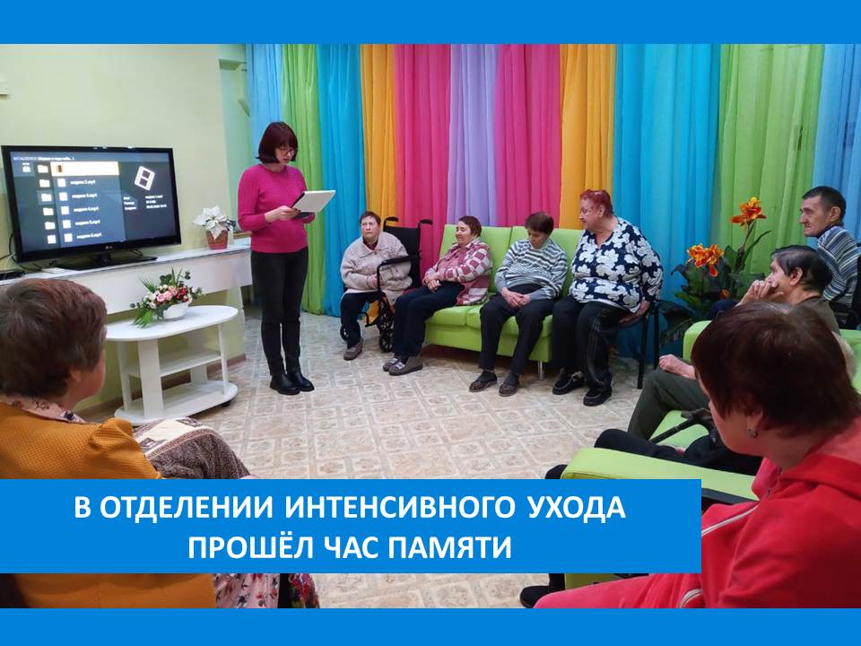 Отделение интенсивного ухода Вязниковского Пансионата (с. Сарыево) периодически посещают специалисты информационно-правового библиотечного центра «Интеллект». На этот раз для жителей отделения был проведён час памяти «Ангелы фронта», посвящённый подвигу медицинских работников в годы Великой Отечественной войны. Медики продемонстрировали выдающийся профессионализм и героизм. Они сберегли жизни огромному числу военнослужащих, несмотря на крайне сложные условия работы. Врачи, медсёстры и санитары проявили мужество и самоотверженность, спасая раненых солдат и офицеров на полях сражений. Их подвиг вдохновлял солдат на борьбу с врагом и вселял уверенность в победе.