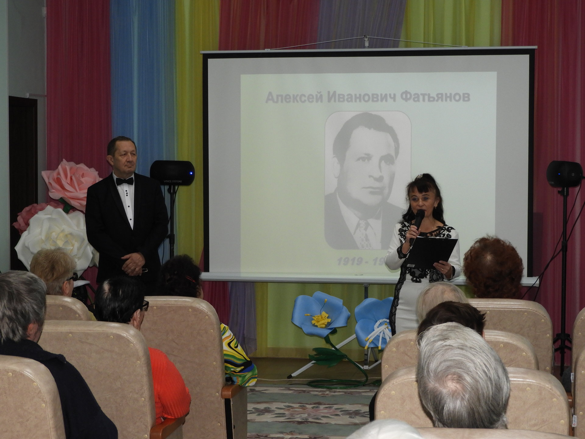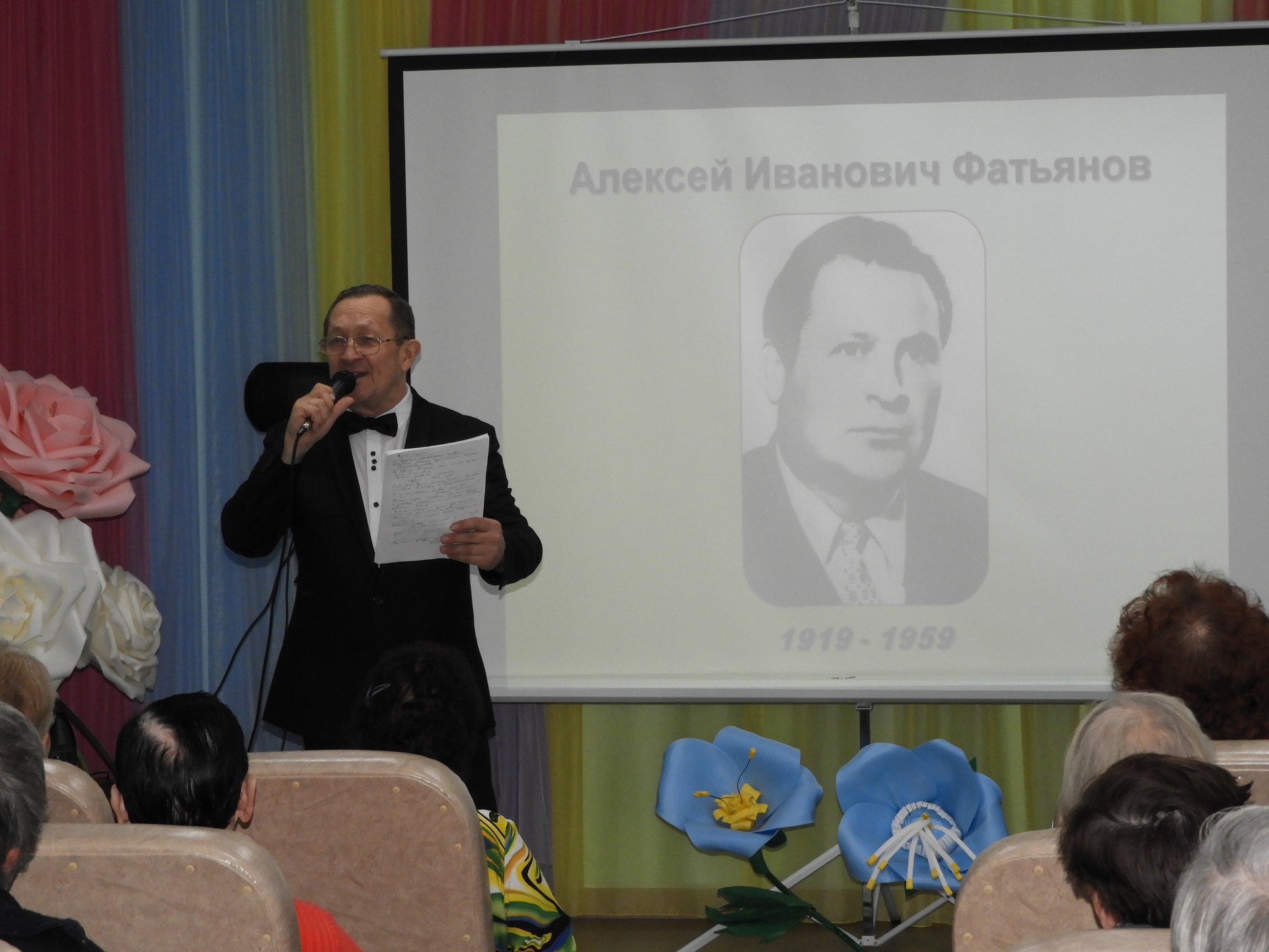 Композитор представил свои новые песни на стихи Алексея Ивановича – «Стали ночи светлыми», «Дождик», «Если б я родился не в России», «Горсть земли», «Снежинки» и др. Между выступлениями артиста, ведущая напомнила зрителям о жизни и творчестве поэта. В ходе мероприятия была представлена презентация, посвящённая памятной дате А.И. Фатьянова, которая продемонстрировала и дом, в котором он родился, и семью, и памятные места.