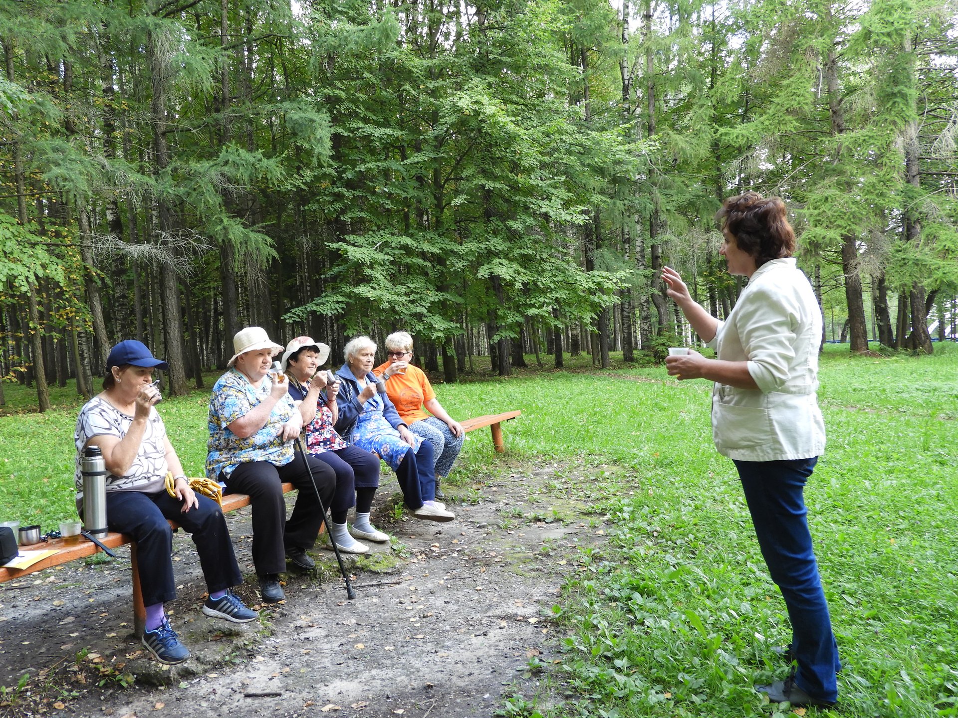 Затем, наслаждаясь полезным воздухом, сделали дыхательную гимнастику, напитались солнечной энергией и напоследок угостились фиточаем из душистых трав, приготовленным заранее.