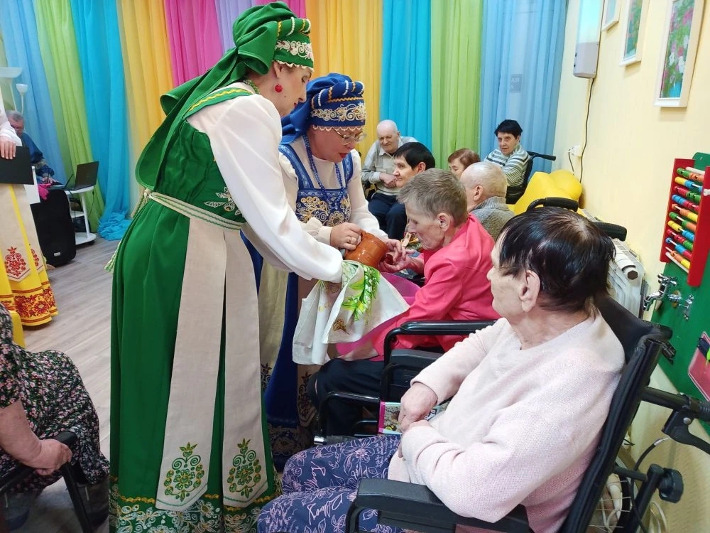В отделение  интенсивного ухода с. Сарыево  в светлую седмицу состоялась Пасхальная встреча  с  народным коллективом ансамбля «Вишенье» , который представил  музыкальную  программу  « Праздник света и добра».