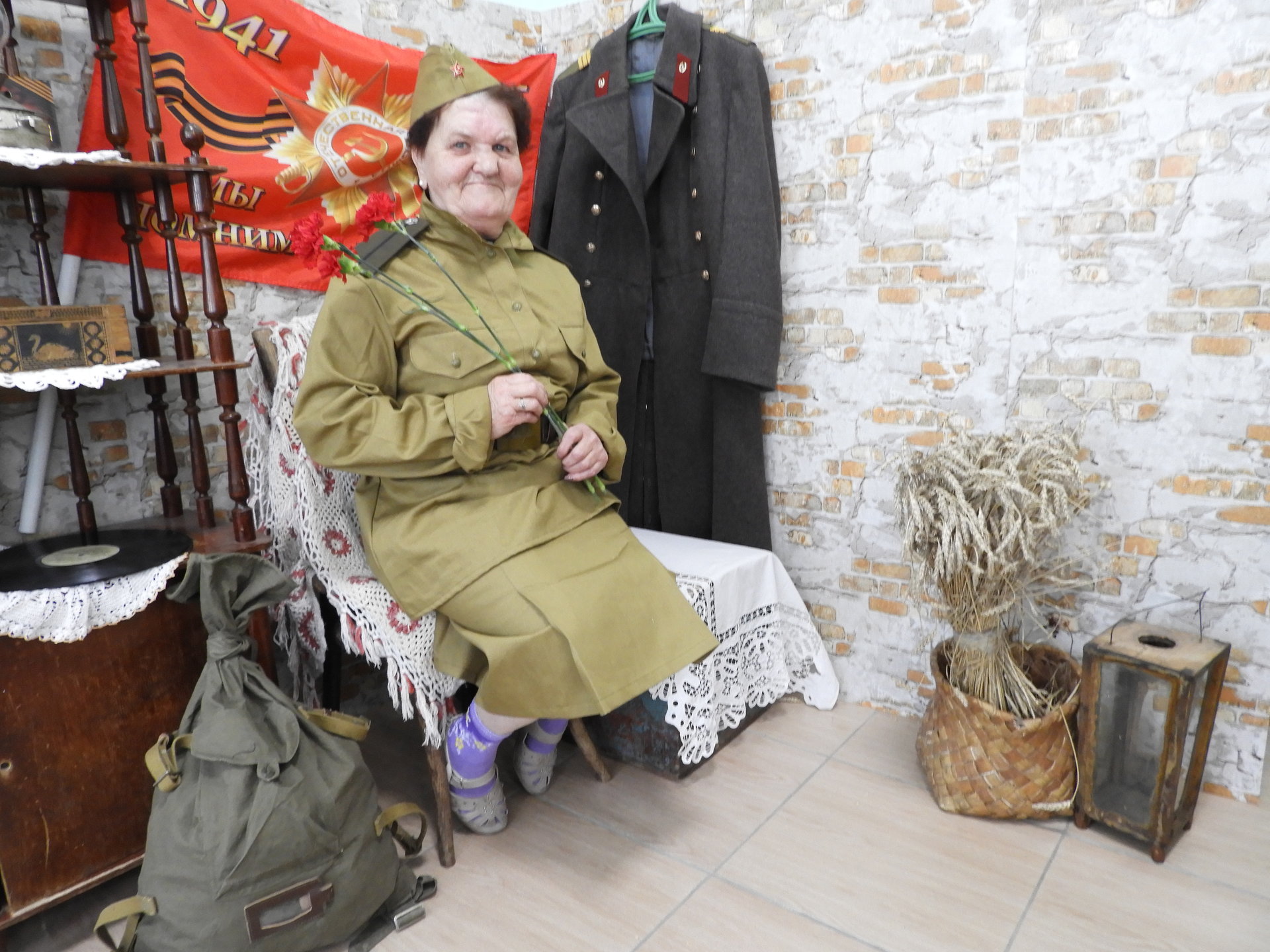 В преддверии празднования 74-й годовщины Победы в Великой Отечественной Войне, в Вязниковском Пансионате имени Е.П. Глинки была организована военная тематическая фотозона. В фотозоне были представлены атрибуты военного времени – солдатская шинель, плащ-палатка, вещмешок, знамя Победы, которые воссоздали обстановку армейского блиндажа. Все желающие могли, примерив гимнастерку и пилотку, сделать фотографии на память, и окунуться в атмосферу военного времени.