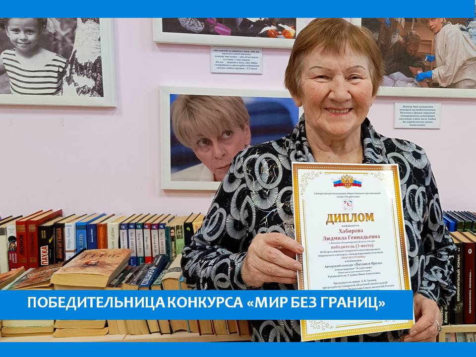Хабирова Людмила Геннадьевна, жительница пансионата, стараясь описать окружающий мир и мир своих ощущений, пишет стихи. Участвуя в конкурсе Самарской региональной общественной организации, в Авторском конкурсе «ПОЭЗИЯ и ПРОЗА» стала победителем (3 место) на 111 Всероссийском Открытом многожанровом творческом конкурсе с международном участием «МИР БЕЗ ГРАНИЦ» со стихотворением «Я счастлива», тем самым способствуя расширению и объединению культурного пространства.