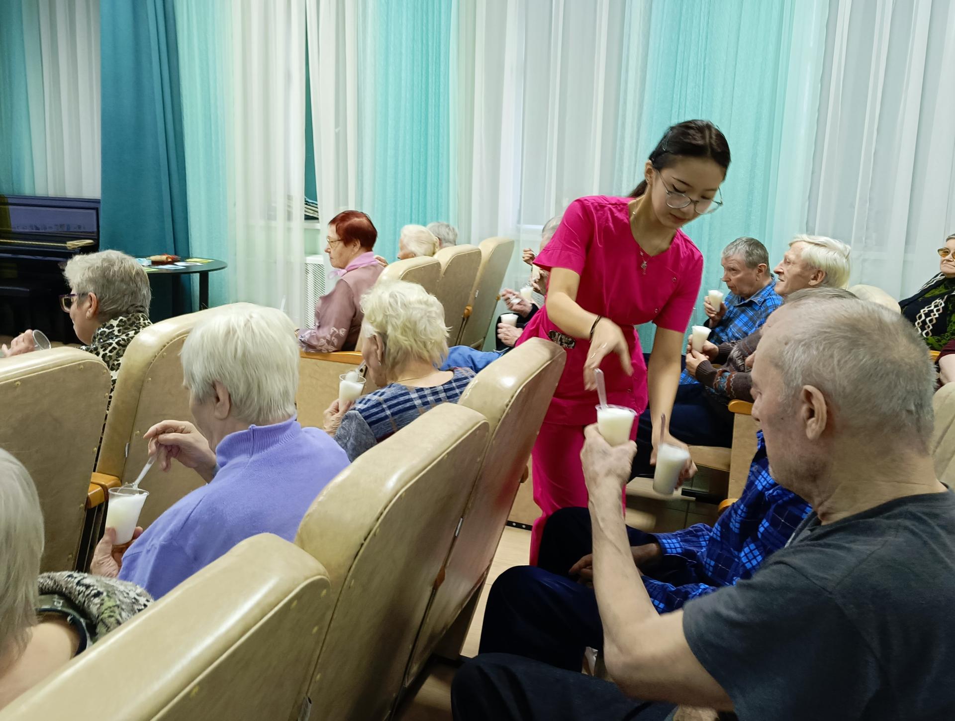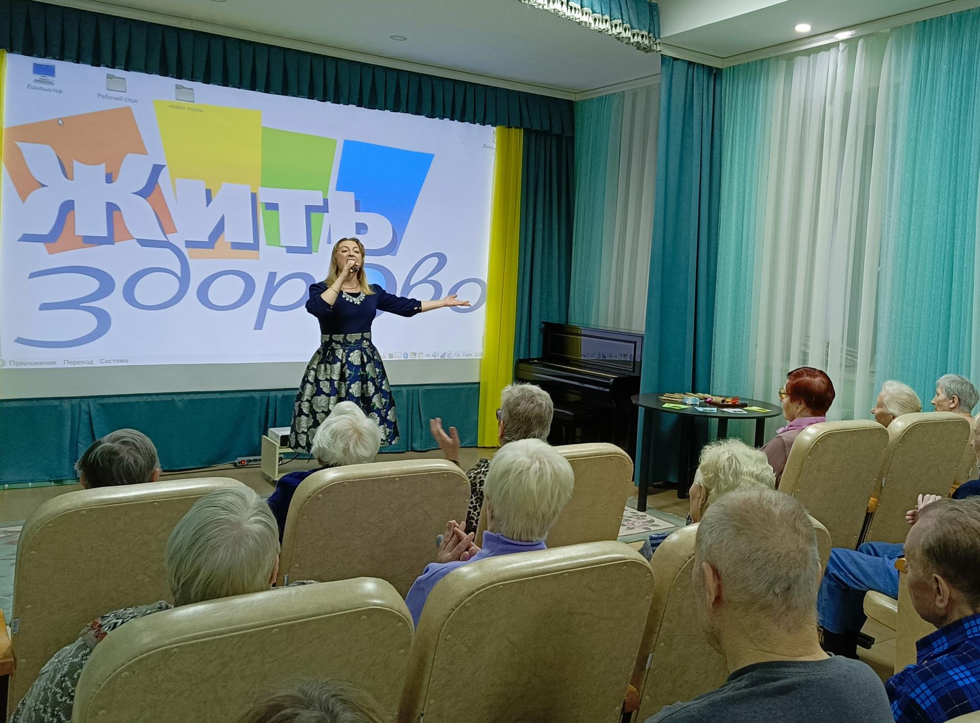 Уже традиционным стало в этот день проводить театр-экспромт, где участники с удовольствием перевоплощаются в различных героев, это литературные головоломки, викторины, пословицы, поговорки, несложные и быстрые мастер-классы – всё это направлено на дружное и весёлое общение. Уже второй год сотрудников социально-реабилитационного отделения дополняет медицинская сестра, под ответственностью которой работает комната здоровья. Свою полезную информацию она подкрепила полезным угощением – кислородным коктейлем. Такая программа никак не могла обойтись без песен, которые делают нашу жизнь насыщеннее и радостней. В  исполнении гостьи из Центра культурного развития Марины Аксёновой прозвучали песни «Перекати поле», «Стою на полустаночке» и «Одного».