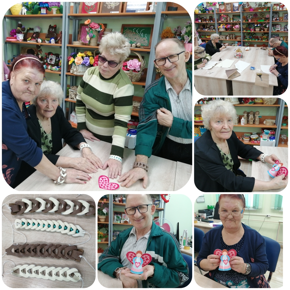 В рамках реализации мероприятий проекта «Активное долголетие» в творческой студии нашего пансионата прошел мастер-класс по изготовлению браслетов из кожи, посвященный Дню всех влюбленных. Сделать это эффектное украшение своими руками несложно, потому что он состоит из звеньев в форме сердца. А сердце символ этого праздника. Ну и куда же без валентинки, каждый участник мастер-класса сделал помимо подарка для своего близкого человека еще и валентинку в форме ангела Валентина.