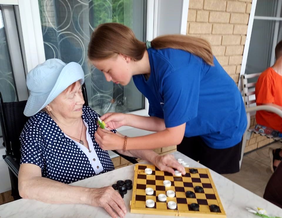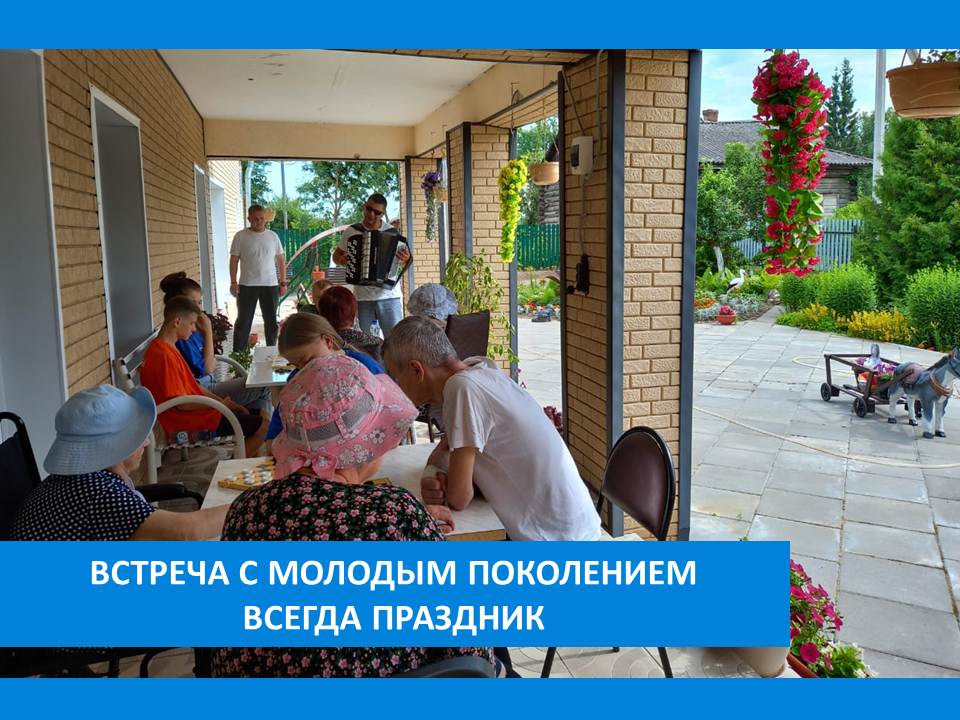 В преддверии Дня семьи любви и верности в отделение интенсивного ухода Вязниковского Пансионата (с. Сарыево) приехали гости – волонтёры подростково-молодёжного клуба «Тимуровец». С концертной программой перед жителями отделения выступил Артём Ермолаев, а ребята-тимуровцы организовали интеллектуальный турнир по шашкам. Небольшие подарки для милых дам в виде брошей-ромашек, изготовленных руками волонтёров, стали приятным моментом в завершении встречи.
