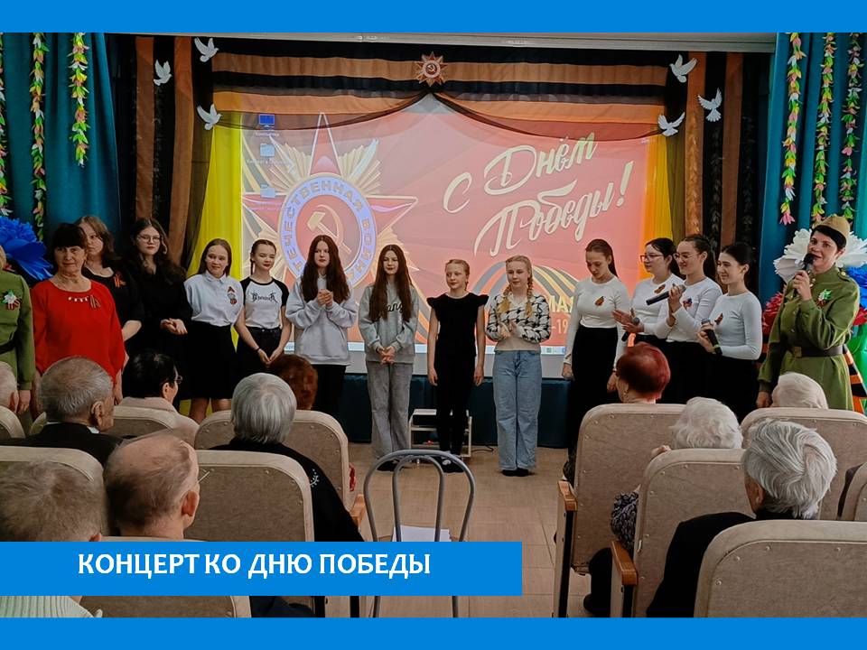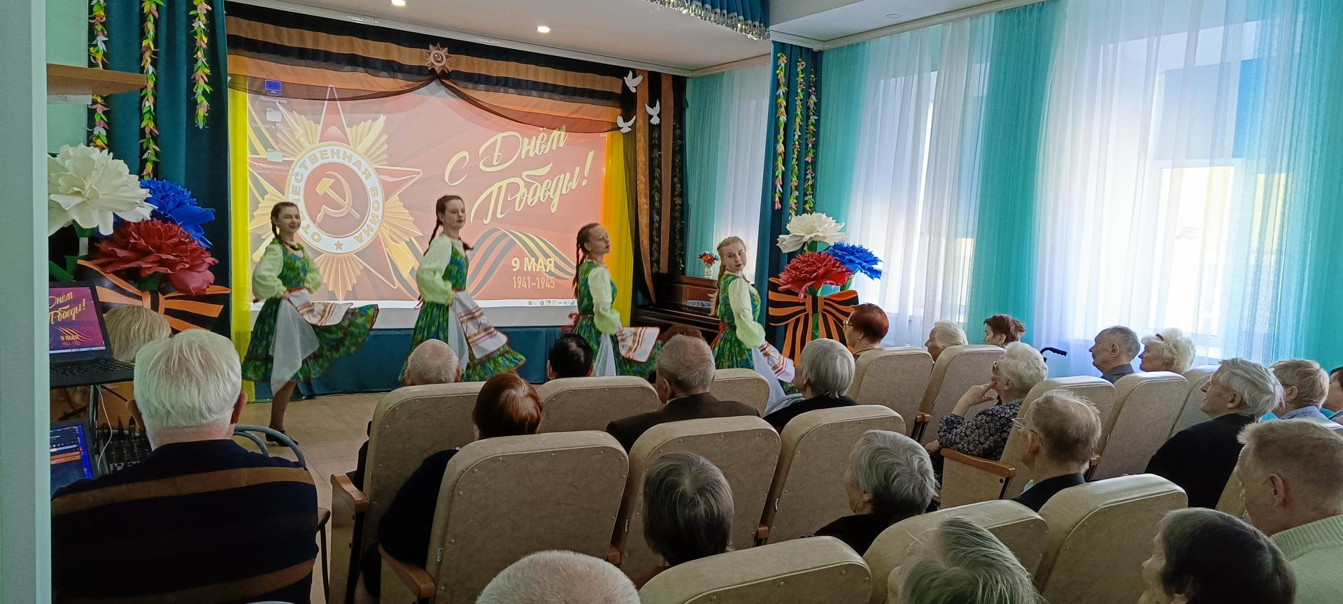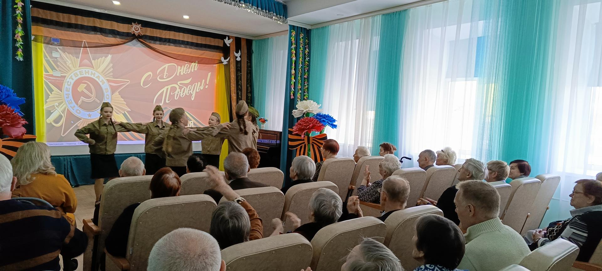 В преддверии Дня Победы в пансионате прошел праздничный концерт. Программу мероприятия для пожилых людей подготовили воспитанники центра дополнительного образования. В концерте прозвучали красивые, лирические, военные песни, исполнялись задорные танцы. Жители с улыбкой и неподдельным теплом встречали каждый номер в исполнении юных гостей.