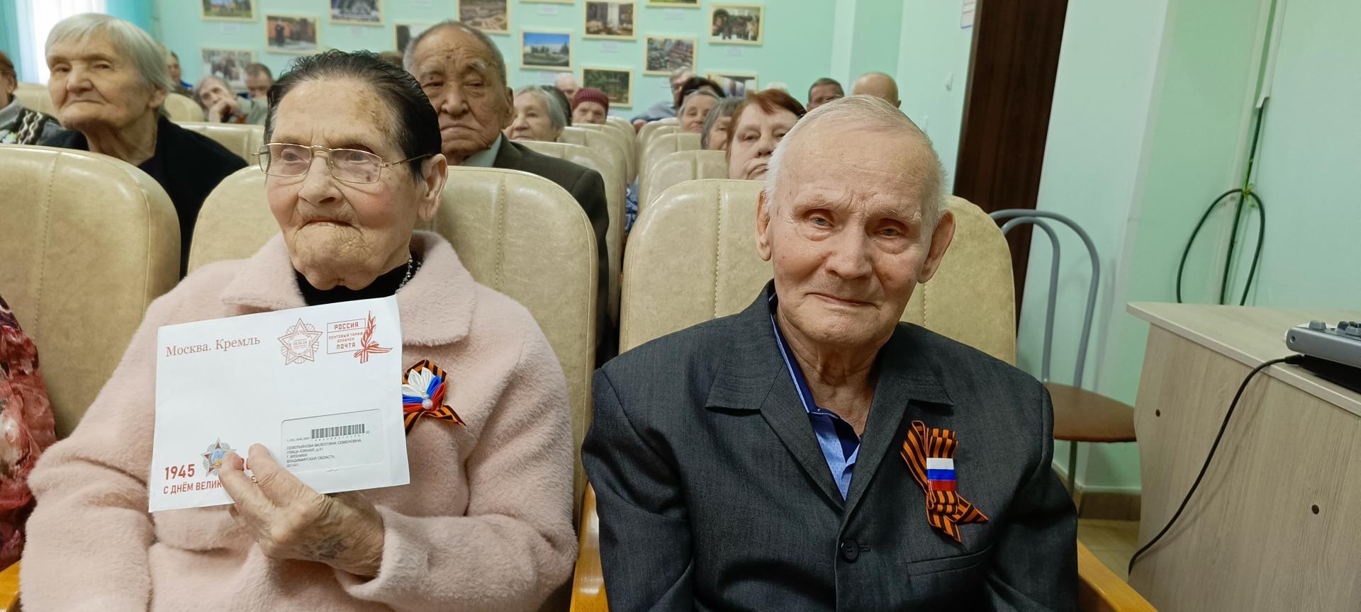 Сегодня поздравления труженики тыла и дети войны получили от Президента РФ, Губернатора Владимирской области и главы администрации Вязниковского района, а так же   в знак признательности их заслуг им были вручены подарки. Отмечены  и те жители, которые вносят свой вклад в поддержку СВО. Пожилые люди в свою очередь, выразили большую благодарность за полученные положительные эмоции.
