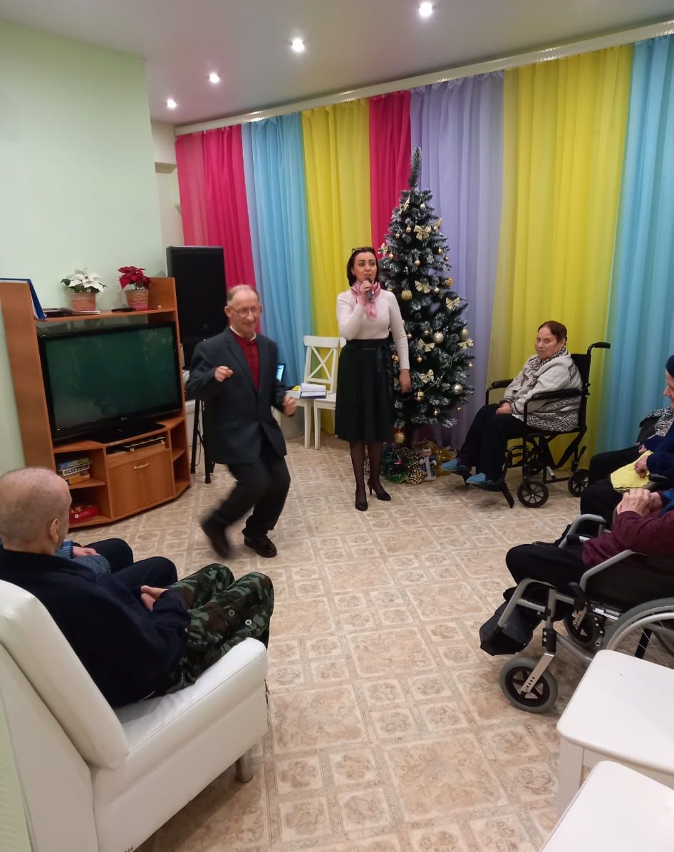 В Отделении милосердия (с. Сарыево) Вязниковского Пансионата 8 декабря прошло праздничное мероприятие, посвящённое декаде инвалидов. Вместе с серебряными волонтёрами Пансионата, жители Отделения милосердия пели песни, слушали частушки, принимали участие в викторинах «Песни кино» и «Поющие актёры», прошли тест «Психология цвета». В ходе мероприятия общались, шутили и смеялись, одним словом праздник удался. Все остались довольны – и артисты, и зрители, подзарядившись друг от друга положительной энергией.