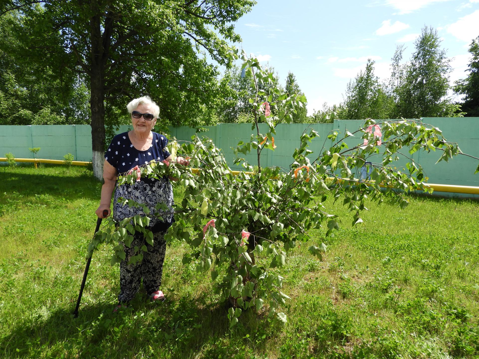 Погода в этот день как по заказу! Жители Вязниковского Пансионата с удовольствием посидели в беседке за чашечкой чая с карамелью, печеньем и блинами с вареньем. Послушали историю праздника, о его традициях и обрядах, о приметах и запретах. Попив чая, душа запросила песен и под баян зазвучали любимые мотивы – «Вот кто-то с горочки спустился», «Живёт моя отрада», «Ой, цветёт калина», «Коробейники» и многие др. Кульминацией во встрече праздника Троицы стал обряд украшения берёзки. Все участники гуляния с удовольствием повязали свою ленточку на берёзовую ветку. Не обошлось и без танцев! Невозможно усидеть на месте, когда на всю улицу звучит «В роще пел соловушка», «Ах вы, сени мои сени» и др.