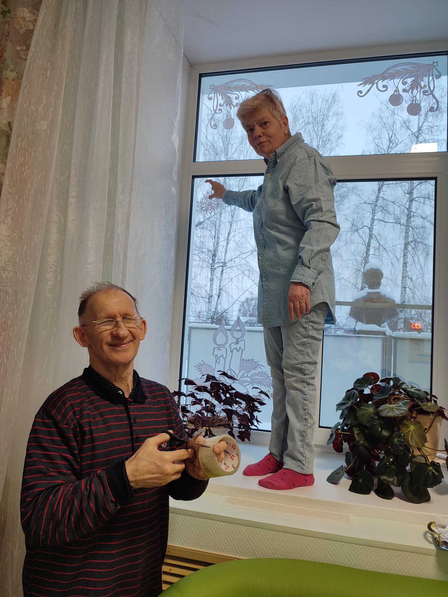 В преддверии замечательного праздника жители Пансионата приняли участие во Всероссийской акции «Новогодние окна – 2024». По уже установившейся традиции в оформлении принимали участие все, кто пожелает. Вытынанки (вырезанные фигурки из бумаги) в виде новогодних символов в сюжетной линии разместились на окнах нашего большого дома. Они создали «домашнюю» обстановку, наполненную новогодним ожиданием чуда.