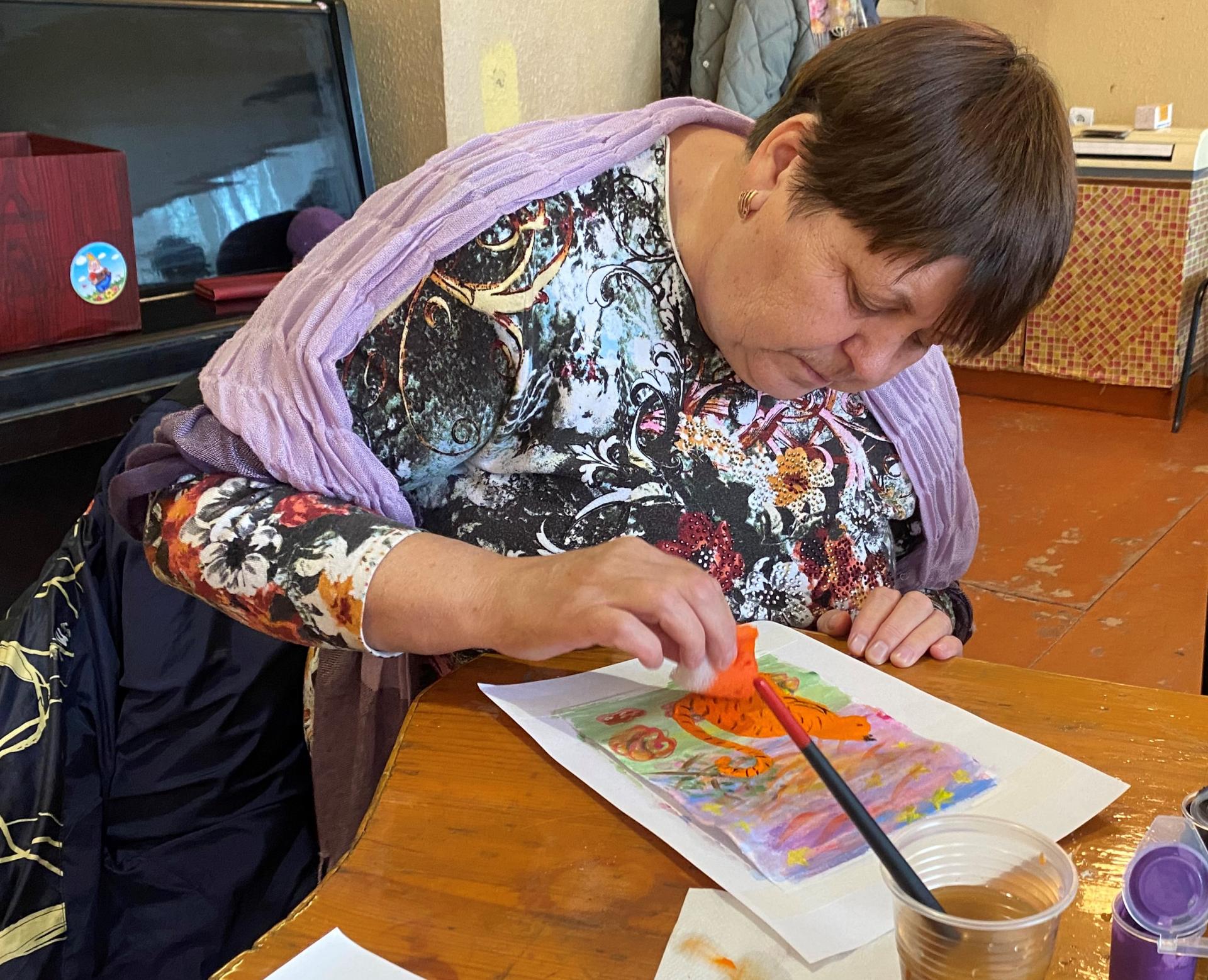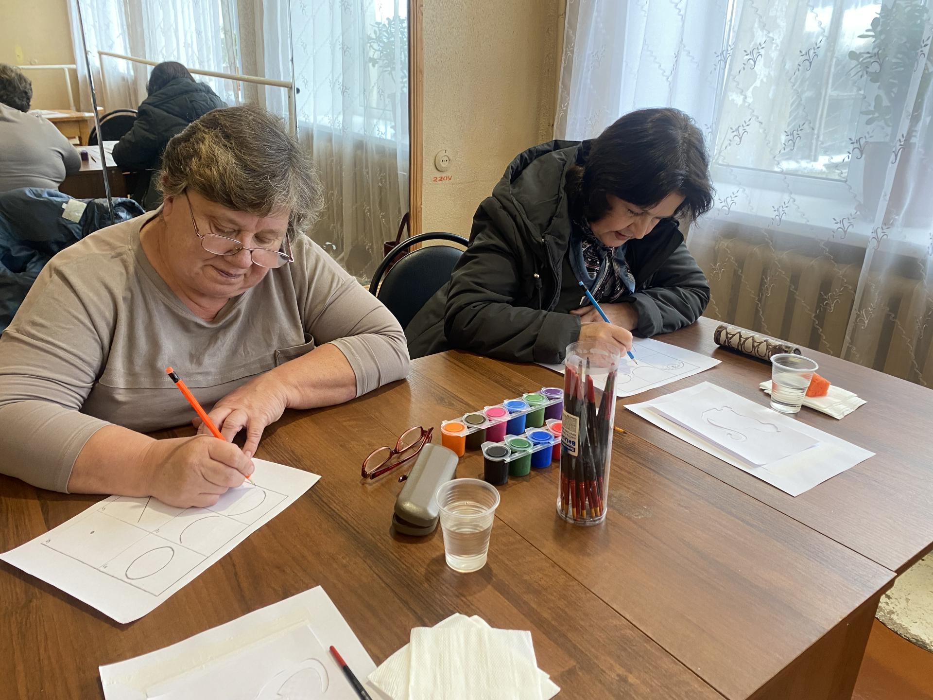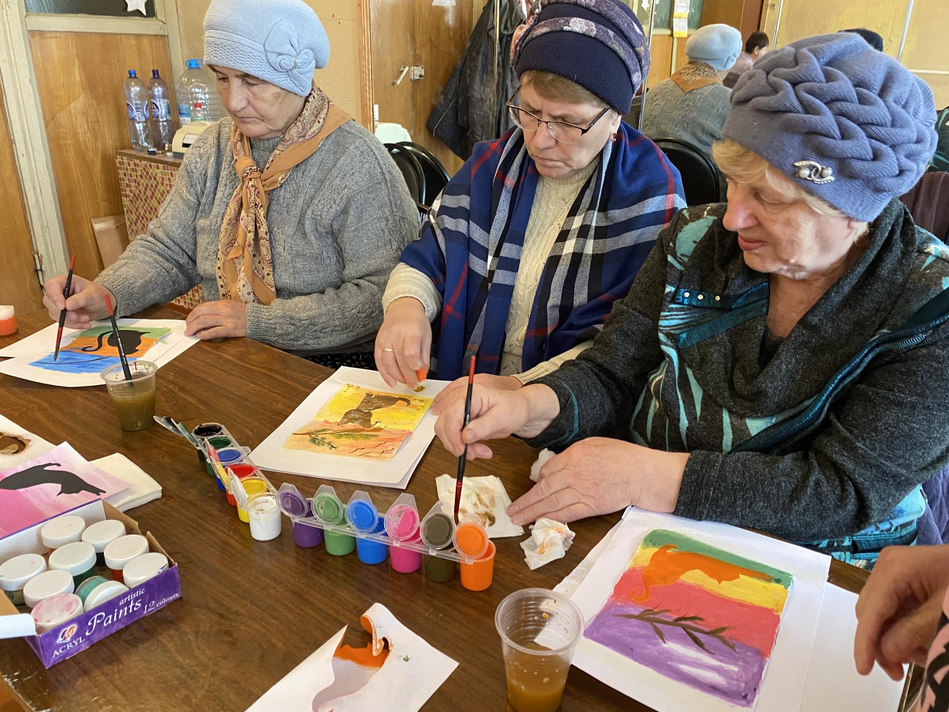 Серебряный волонтёр Вязниковского Пансионата Идрисова Наталья Игоревна предложила использовать нетрадиционную технику рисования по трафарету, а интуитивное рисование позволило довериться самим себе, своим ощущениям и собственному внутреннему миру. Все участники смогли создать свою уникальную картину, передав все свои эмоции и внутреннее состояние с помощью цветовой гаммы. Выбирая яркие краски, у участников прослеживалось улучшение настроения, снижение напряжения и преодоление личностных барьеров в общении.