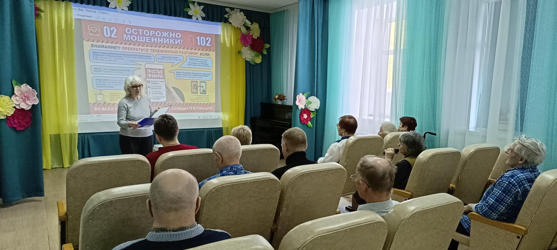 В процессе беседы сотрудники библиотеки призвали жителей пансионата быть предельно бдительными и осторожными, объяснили, как вести себя в той или иной ситуации, как не стать жертвой, какие правила поведения надо помнить. Посоветовали не доверять незнакомым людям, а также проверять всю информацию, поступающую с мобильных телефонов. История показывает, что защита от обмана всегда остается в руках самих людей. Критическое мышление, осведомленность и внимательность – главные инструменты против мошенников всех времен. Как говорится, предупрежден – значит вооружен. В завершении мероприятия были проведены интересные правовые загадки и всем участникам вручены сувениры.