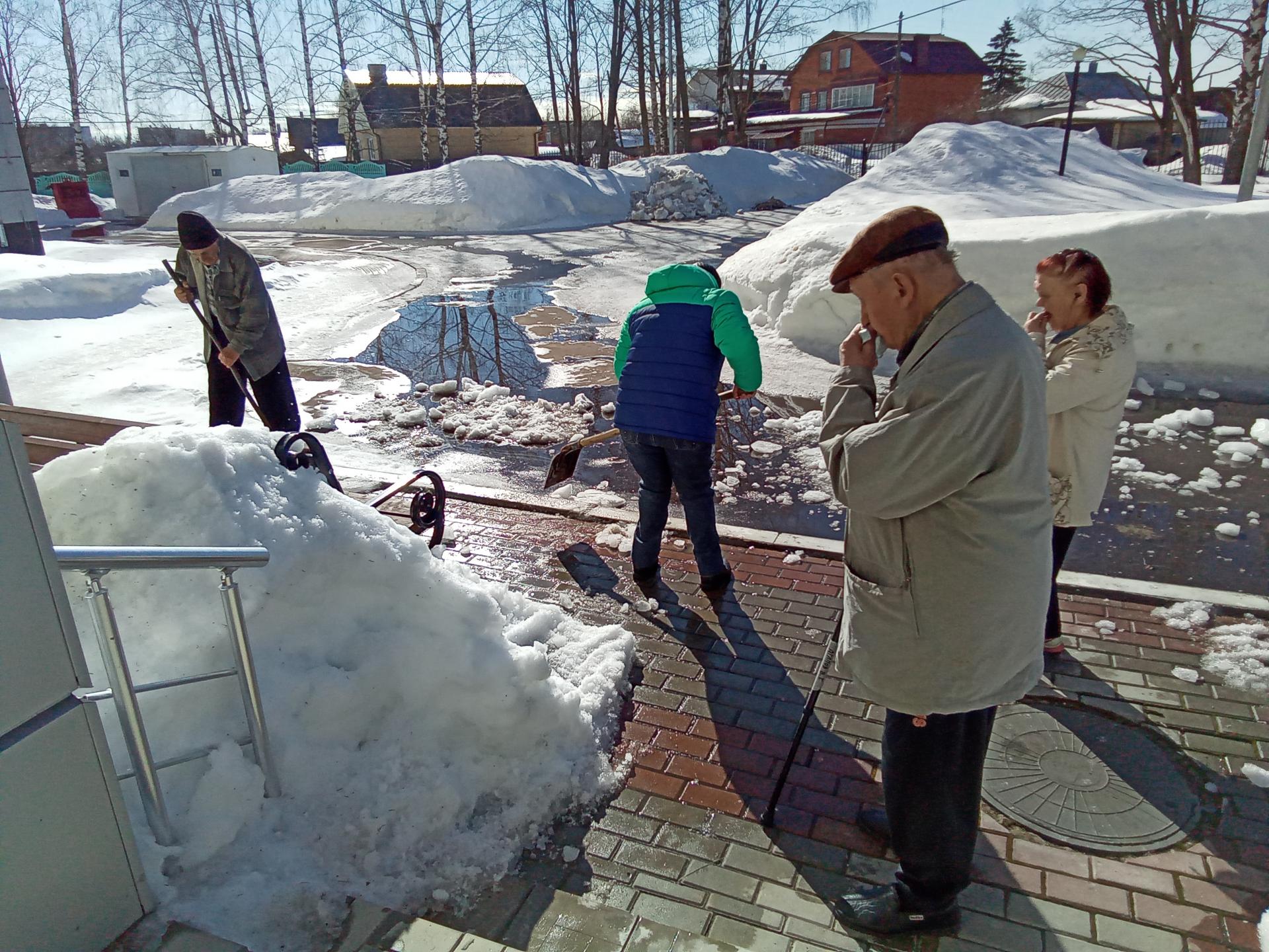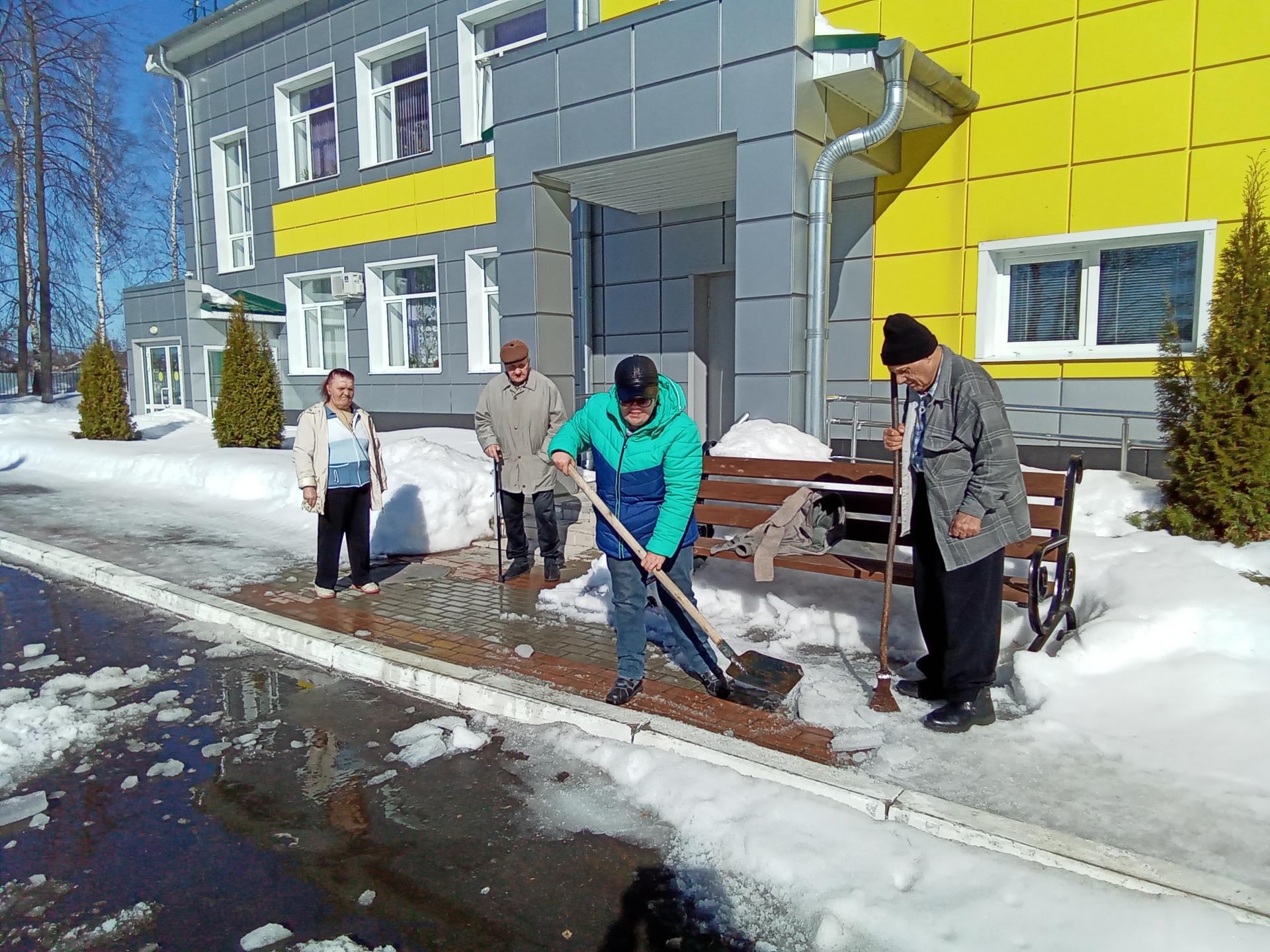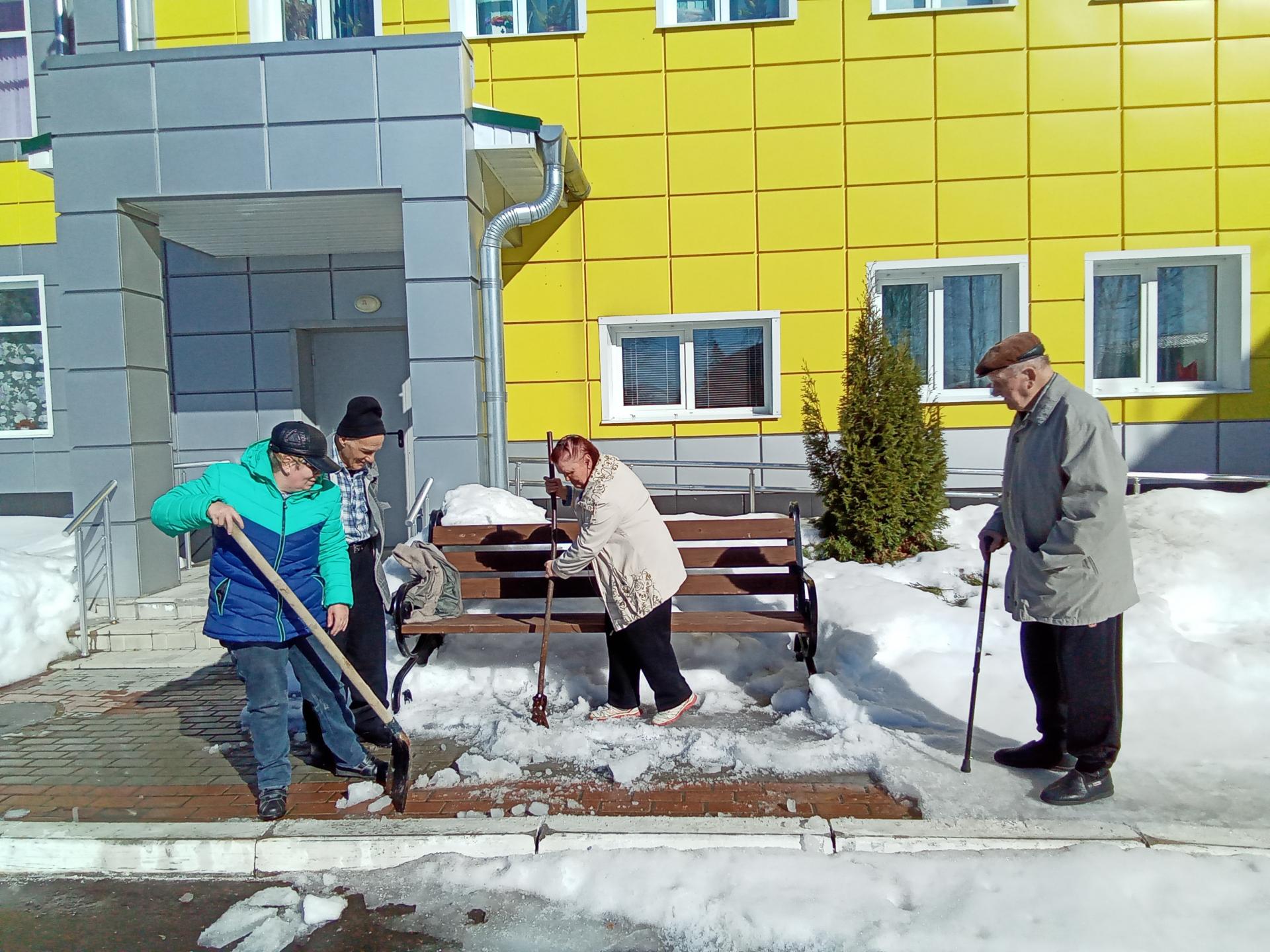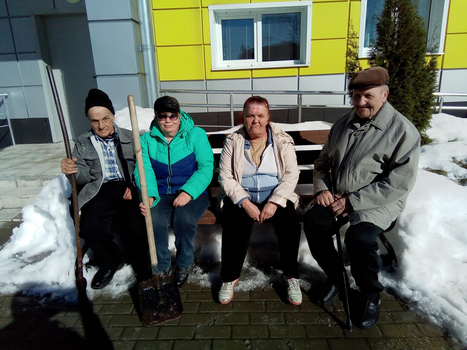 Серебряные волонтёры нашего Пансионата - члены клуба «ДоброStar» снова протянули руку помощи. Сегодня они помогли расчистить снег и лёд, чтобы жители отделения милосердия могли беспрепятственно выходить на прогулку и наслаждаться тёплыми лучами весеннего солнышка.