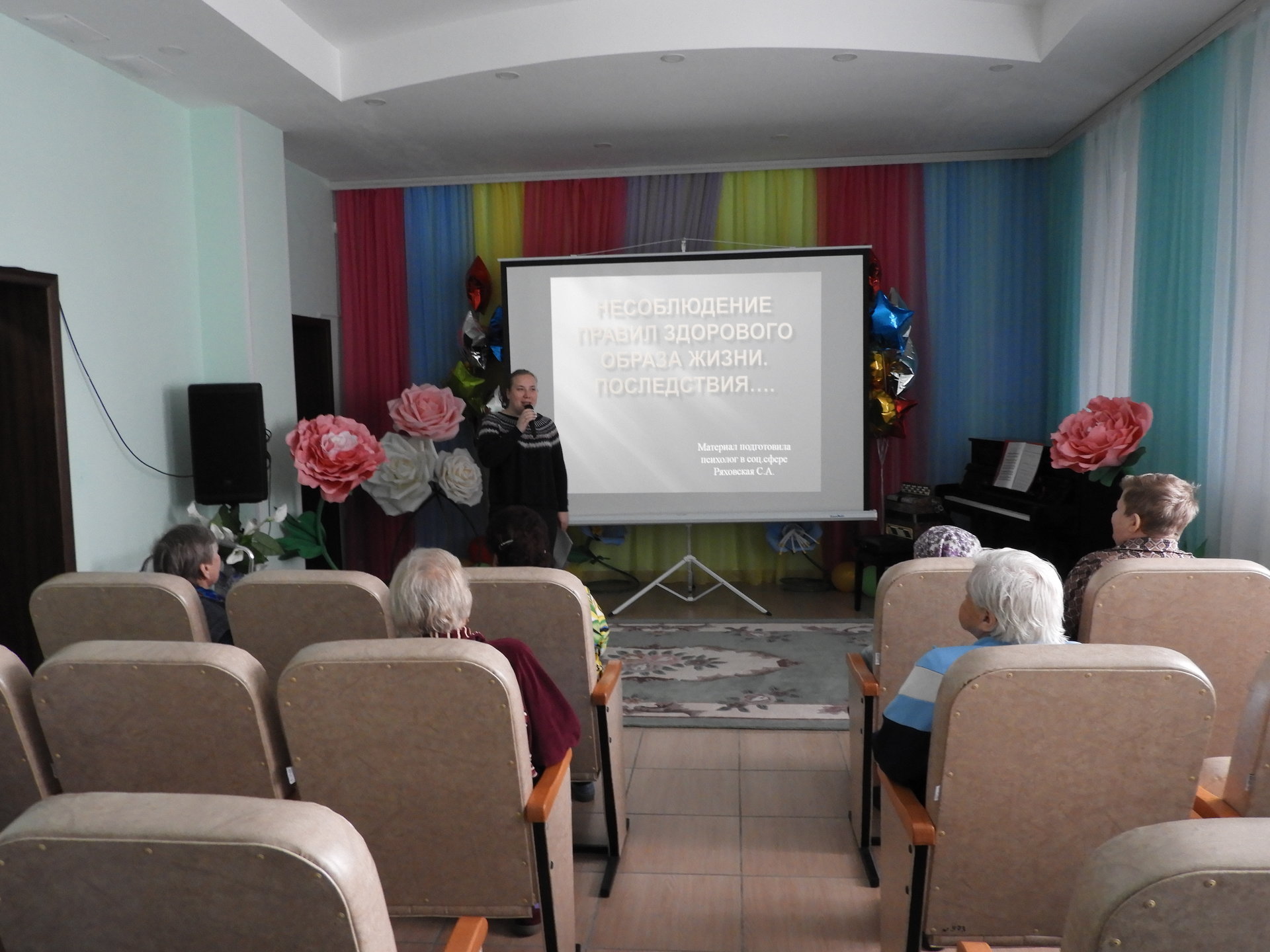 По окончанию лекции, проживающими были заданы интересующие их вопросы, и по результатам дискуссии можно сделать вывод о том, что данная тема актуальна, и цель, в мотивации жителей к ведению здорового образа жизни – достигнута.