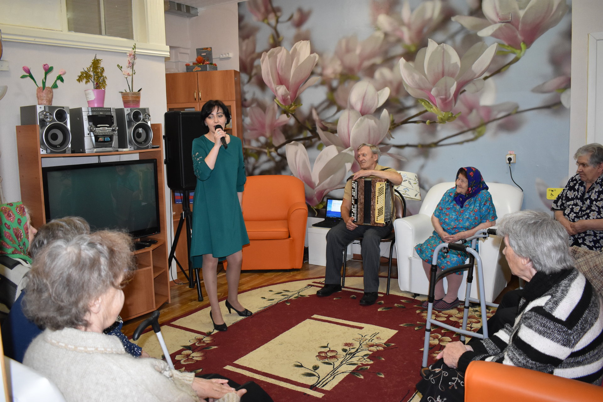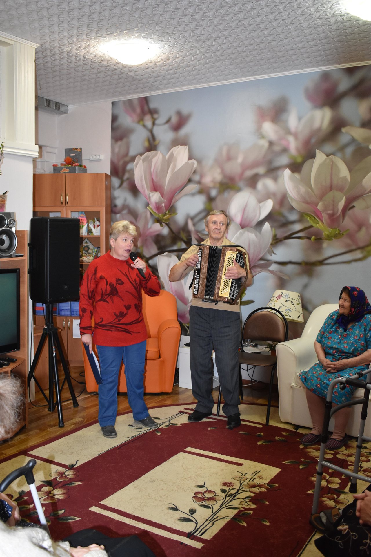 Рассказ о просторах Владимирской земли, её исторических корнях, традициях, о людях, прославивших родной край чередовался с музыкальными подарками. Наталья Идрисова, Павел Глебов и Пётр Гольденберг радовали своим творчеством. Зрители с удовольствием подпевали. А как же не подпеть, если звучат такие задушевные песни как «Когда весна придёт, не знаю», «Деревенька», «Выйду ночью в поле с конём», «В лунном сиянье», «Песенка о хорошем настроении» и др. Каждое выступление сопровождалось аплодисментами. Удовольствие получили и зрители, и артисты. Пожелав крепкого здоровья, добра и мира, серебряные волонтёры возвратились в свой родной Пансионат.