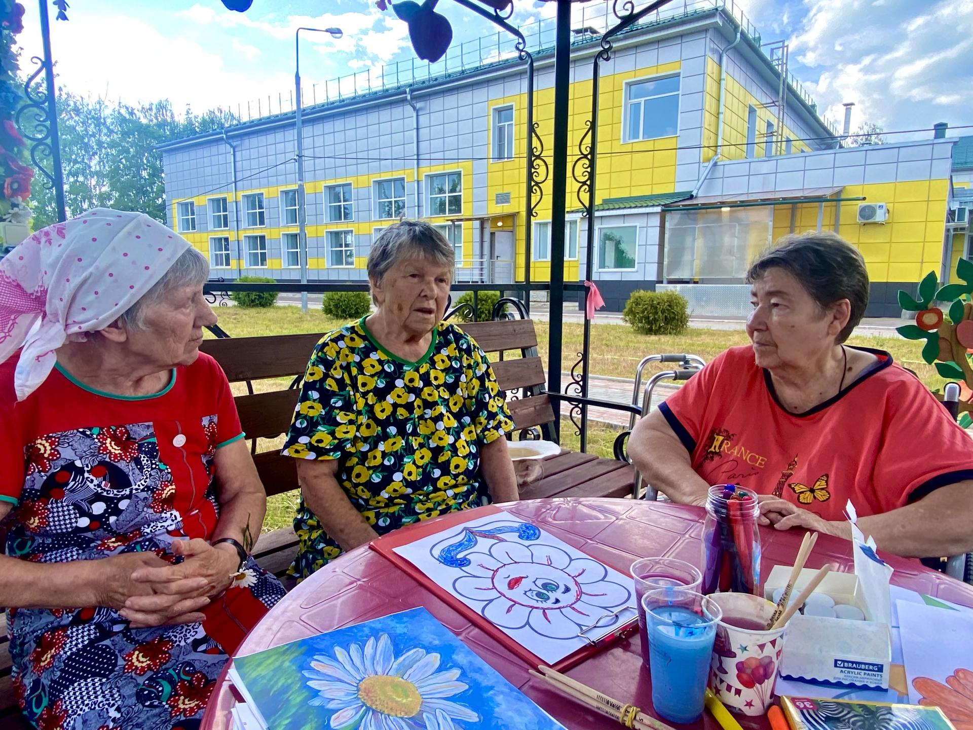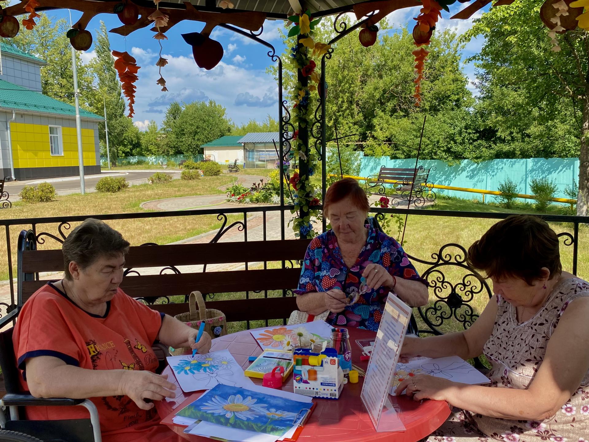 В преддверии Фатьяновского праздника и в рамках проекта «Активное долголетие» с жителями Вязниковского Пансионата состоялось арт-терапевтическое мероприятие, посвященное одной из песен на стихи А.И. Фатьянова «Ромашка моя». Каждый из участников в своей цветовой палитре подготовил рисунки, символизирующие уникальный цветок ромашку. В процессе работы пели песни, смеялись, творили, знакомились с интересными фактами и легендами о ромашках, дарили друг другу улыбки и радость и даже успели погадать на любовь. Благодаря данному мероприятию получатели социальных услуг узнали для себя много нового и интересного, а свои чувства и эмоции смогли выразить в своих работах и значительно улучшили свое психоэмоциональное состояние и душевный настрой.