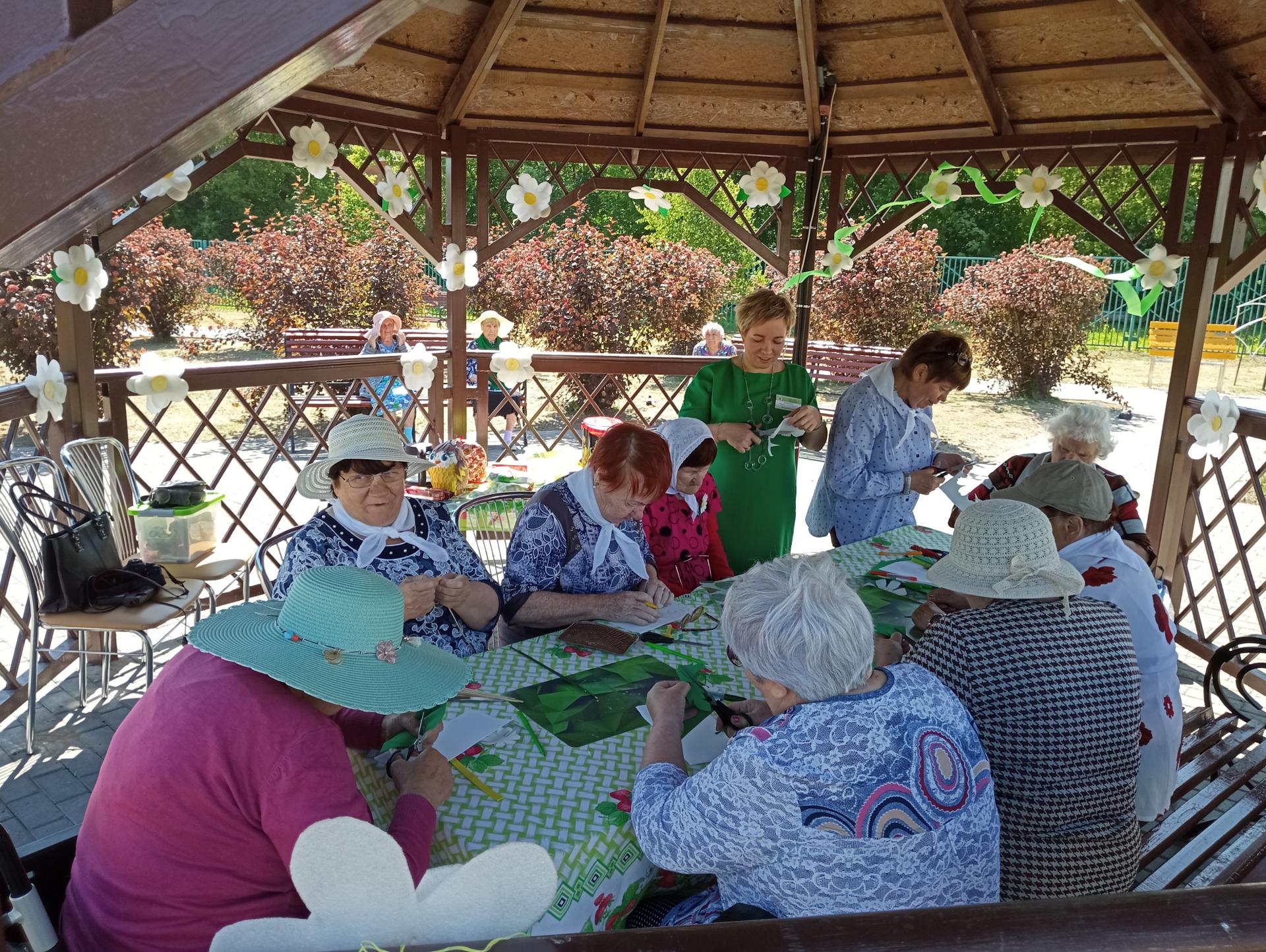 В рамках плана мероприятий волонтерской деятельности в преддверии дня «Семьи любви и верности» мастерицы Вязниковского Пансионата - серебряные волонтеры клуба «ДоброSTAR» посетили жителей Пансионата г. Муром. Они провели мастер-класс по созданию «Ромашкового букета» в технике моделирование из фоамирана. Мероприятие прошло на свежем воздухе в теплой дружеской обстановке, много общались, пили чай, пели песни, читали стихи. В завершение творческой встречи участники мастер-класса обменялись подарками и устроили совместную фотосессию.
