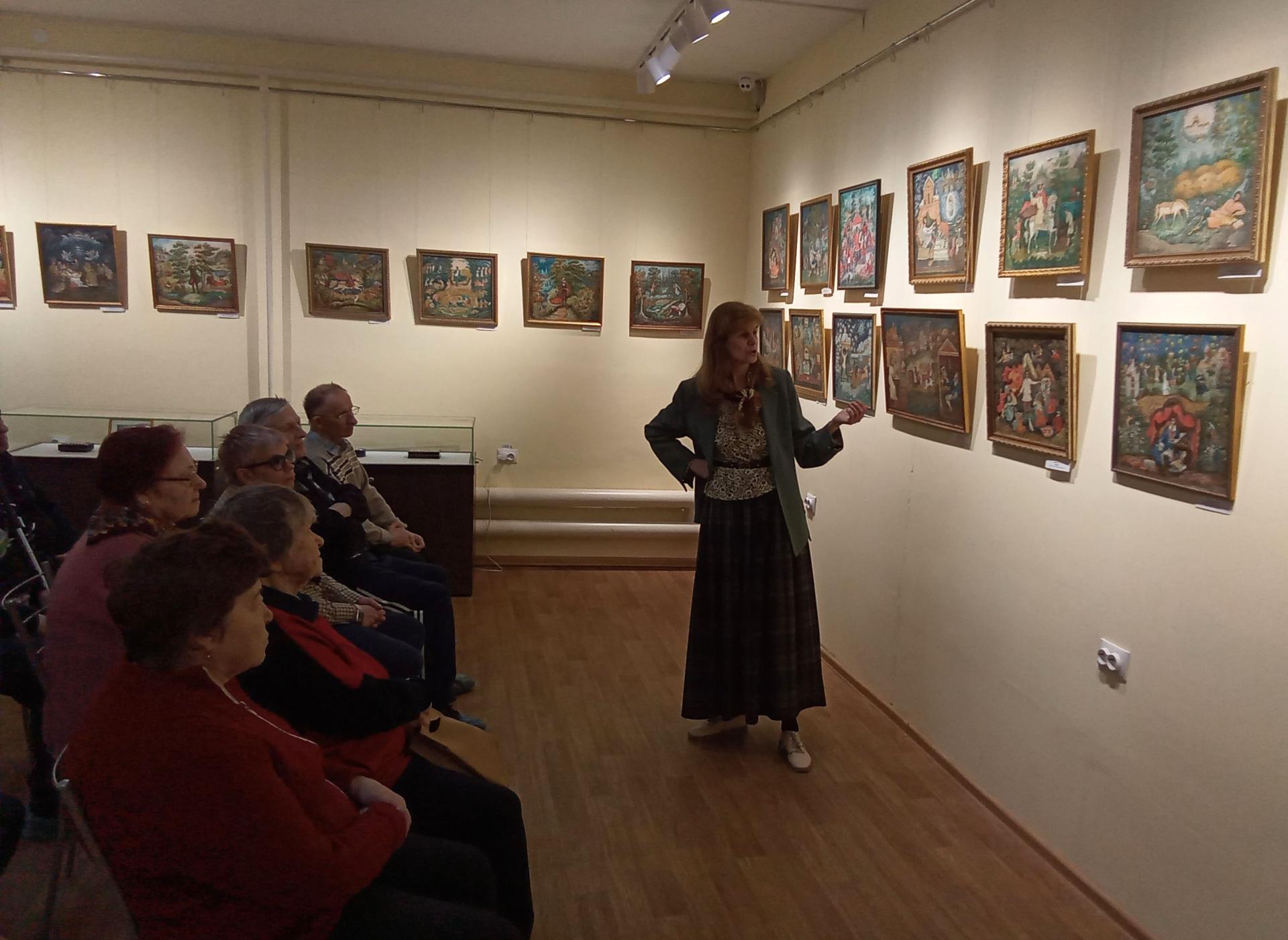 Не смотря на то, что многие уже не раз бывали в этом замечательном музее, всегда для себя подчерпнёшь что-то новое и интересное. Сотрудники музея радушно встретили экскурсантов и провели увлекательную экскурсию по основной экспозиции музея - «Искусство Мстеры», где представляется развитие традиционных промыслов Мстеры, искусство мстерских художников с ХVII века до настоящего времени. Особое внимание заслуживает коллекция лаков, которая насчитывает более 350 предметов. Все экспонаты вызывали большой интерес, особенно шкатулки со сказочными сюжетами. После основных экспозиций, туристы посетили выставочный зал, в котором представлена персональная выставка - коллекция работ лаковой миниатюрной живописи заслуженного художника РФ Л.А. Демидовой «Приют, сияньем муз одетый…», посвящённая жизни и творчеству А.С. Пушкина.