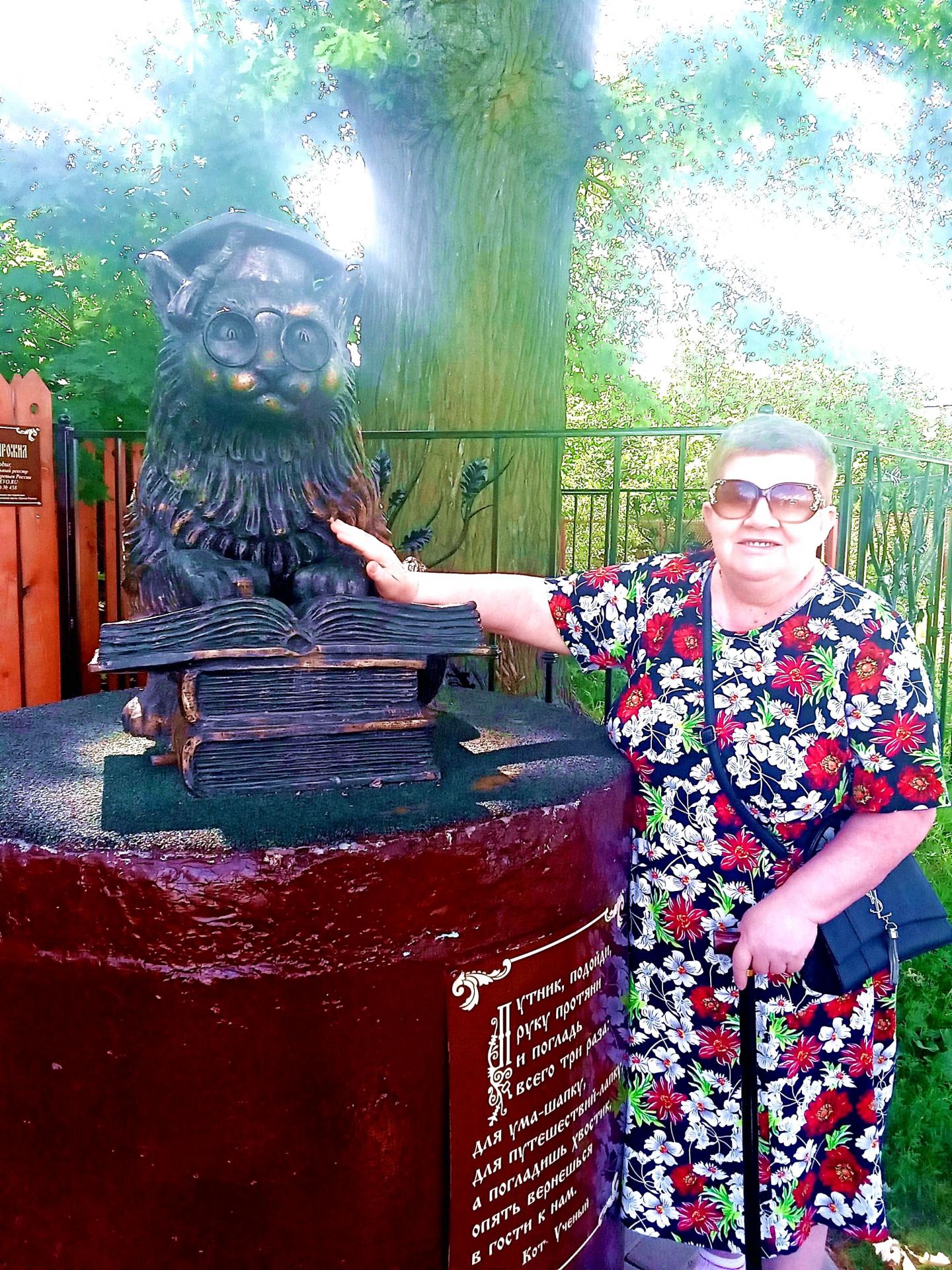 В преддверии празднования Дня России, жительница Вязниковского Пансионата Галина Николаевна Малинина принимает участие в сетевом фотофлешмобе «Русь, Россия, Родина моя!», организатором которого является Центральная сельская библиотека структурное подразделение МКУ «Арсеньевская МБ» МО Арсеньевский район Тульской области. Участнику нужно представить фото на фоне родных, любимых мест. Фотография выполнена рядом с Вязниковской достопримечательностью - памятником Коту учёному (Владимирская область). Вязниковский Кот ученый стал оформлением и дополнением природной уникальности – это дуб, который смело можно назвать свидетелем истории города, ведь ему уже 350 лет.