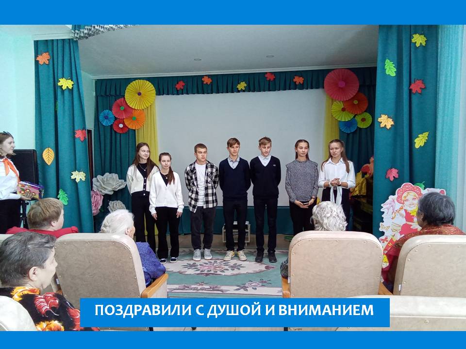 Есть в октябре замечательный и добрый праздник – День пожилых людей, праздник мудрости и добра! В этот день учащиеся  традиционно поздравляли  жителей «Пансионата им.Е.П.Глинки». Ребята подготовили праздничную программу и окружили  особым вниманием наших дорогих бабушек и дедушек.