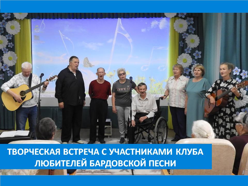 23 июля в гости к жителям Вязниковского Пансионата пришли участники клуба любителей бардовской песни «На семи венцах». Как всегда, в хорошем настроении, с позитивом и своей неиссякаемой творческой энергией, артисты дарили своё творчество и вдохновение.