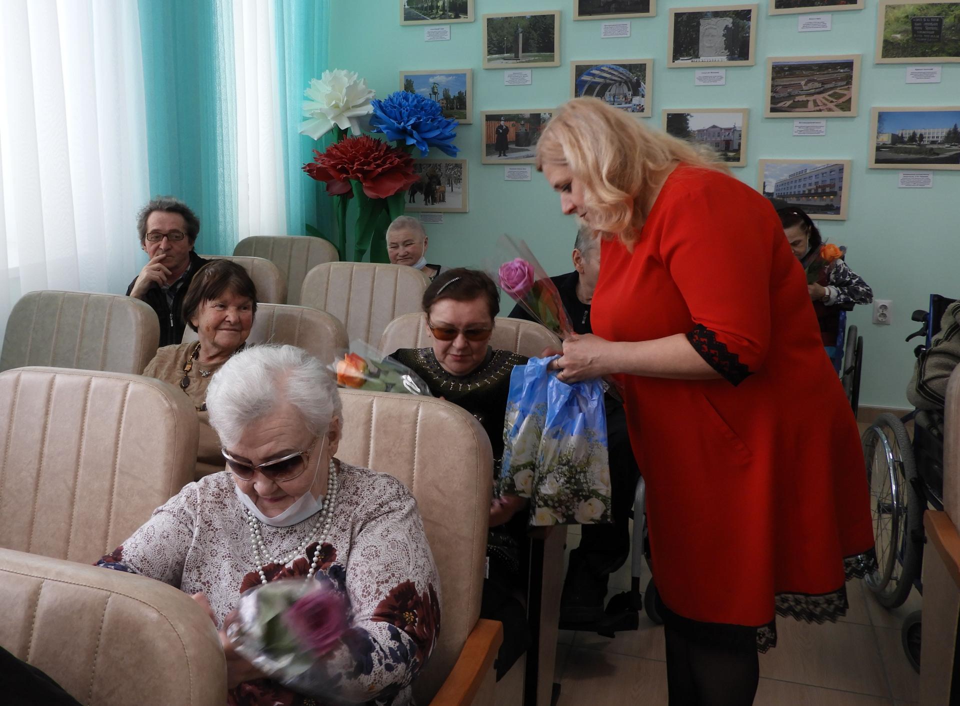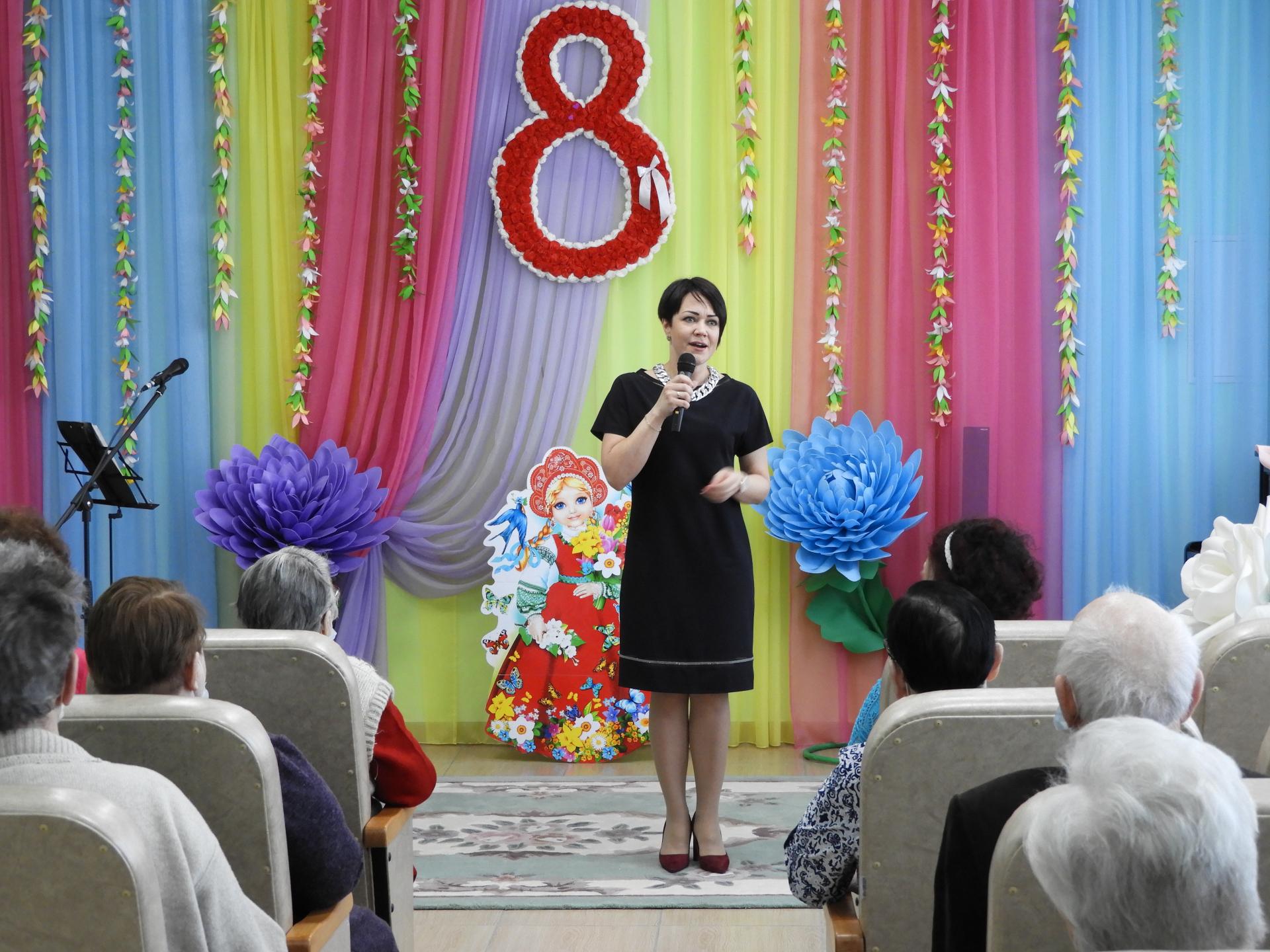 В самом начале торжества, слова поздравления звучали от директора Пансионата Е.А. Сергеевой. А прекрасные песни и хорошее настроение дарили гости, артисты из Стёпанцевского молодёжного клуба. В их исполнении прозвучали песни «Наш сосед», «Дунай», «Течёт ручей», «Букет из белых роз» и др.