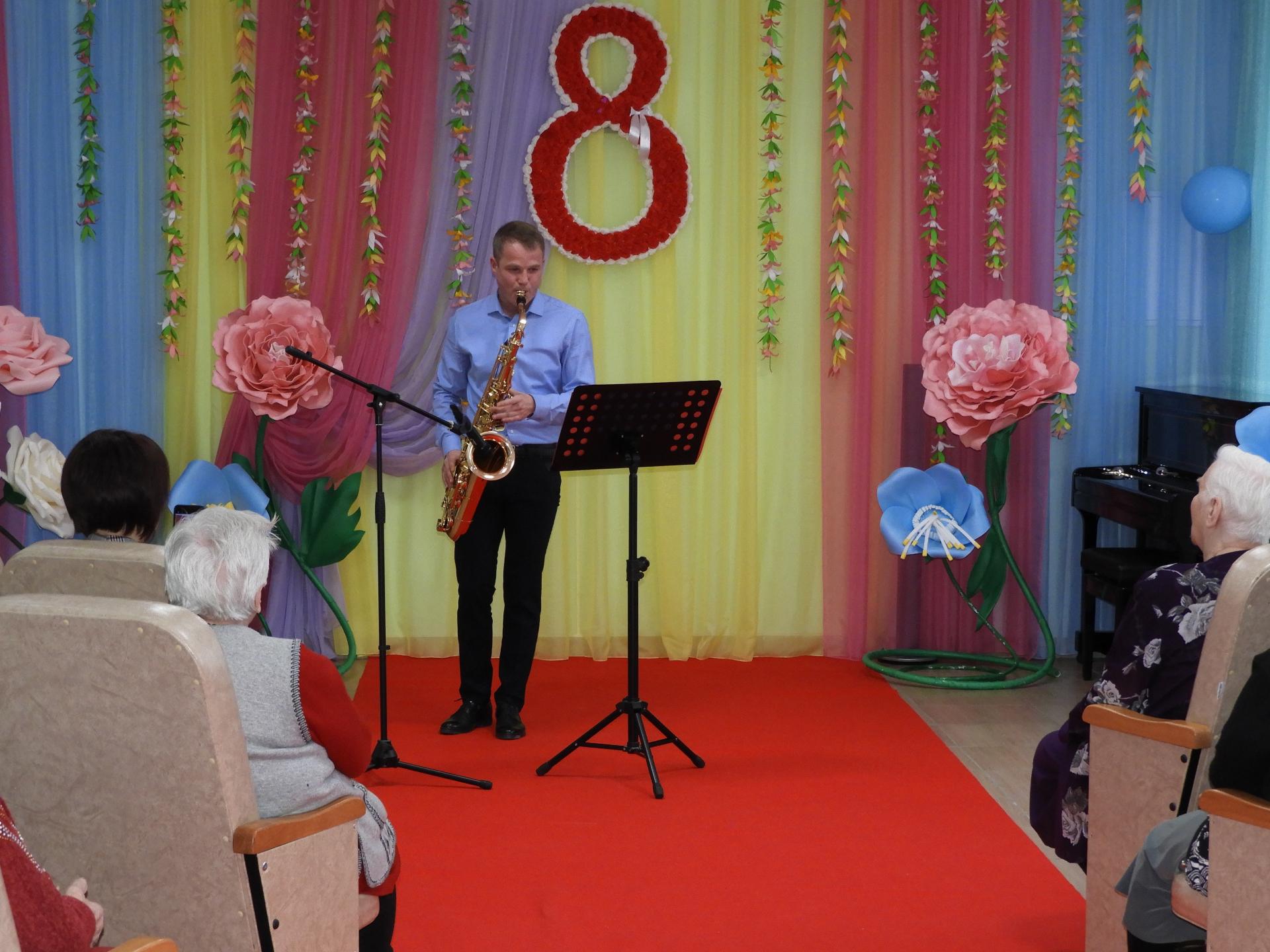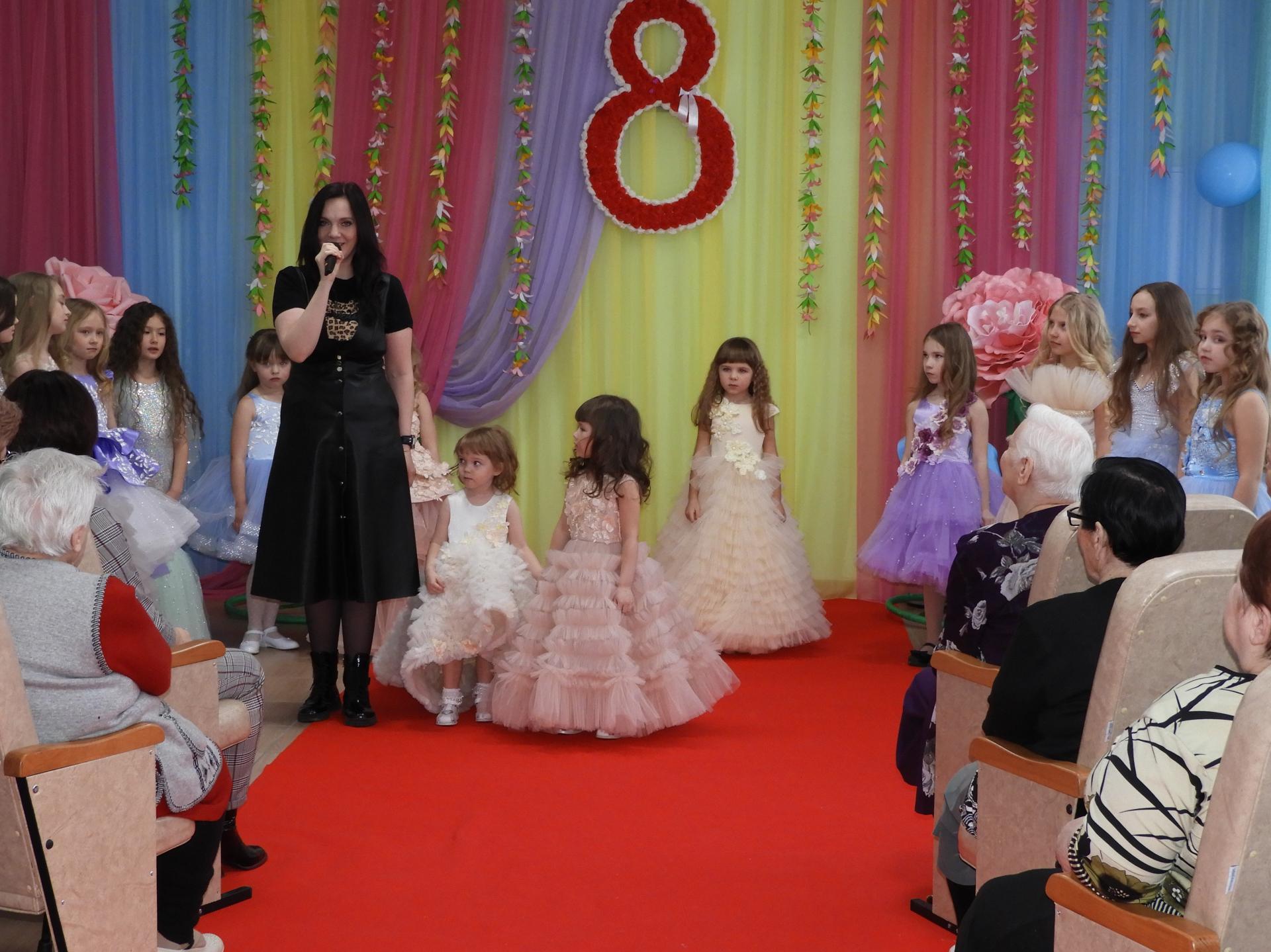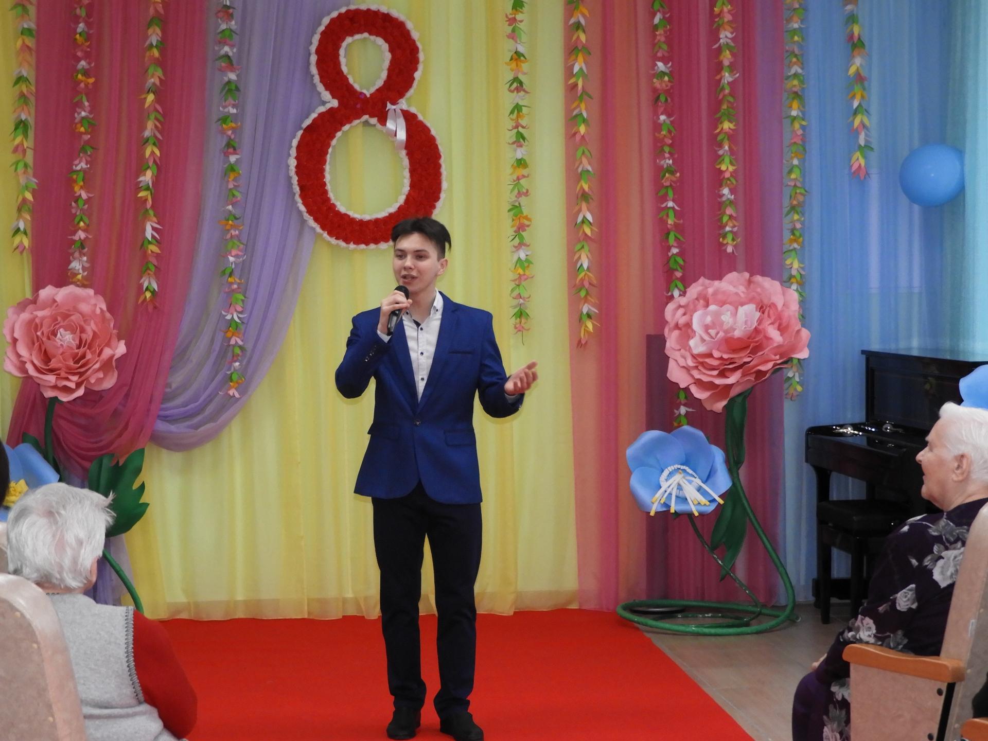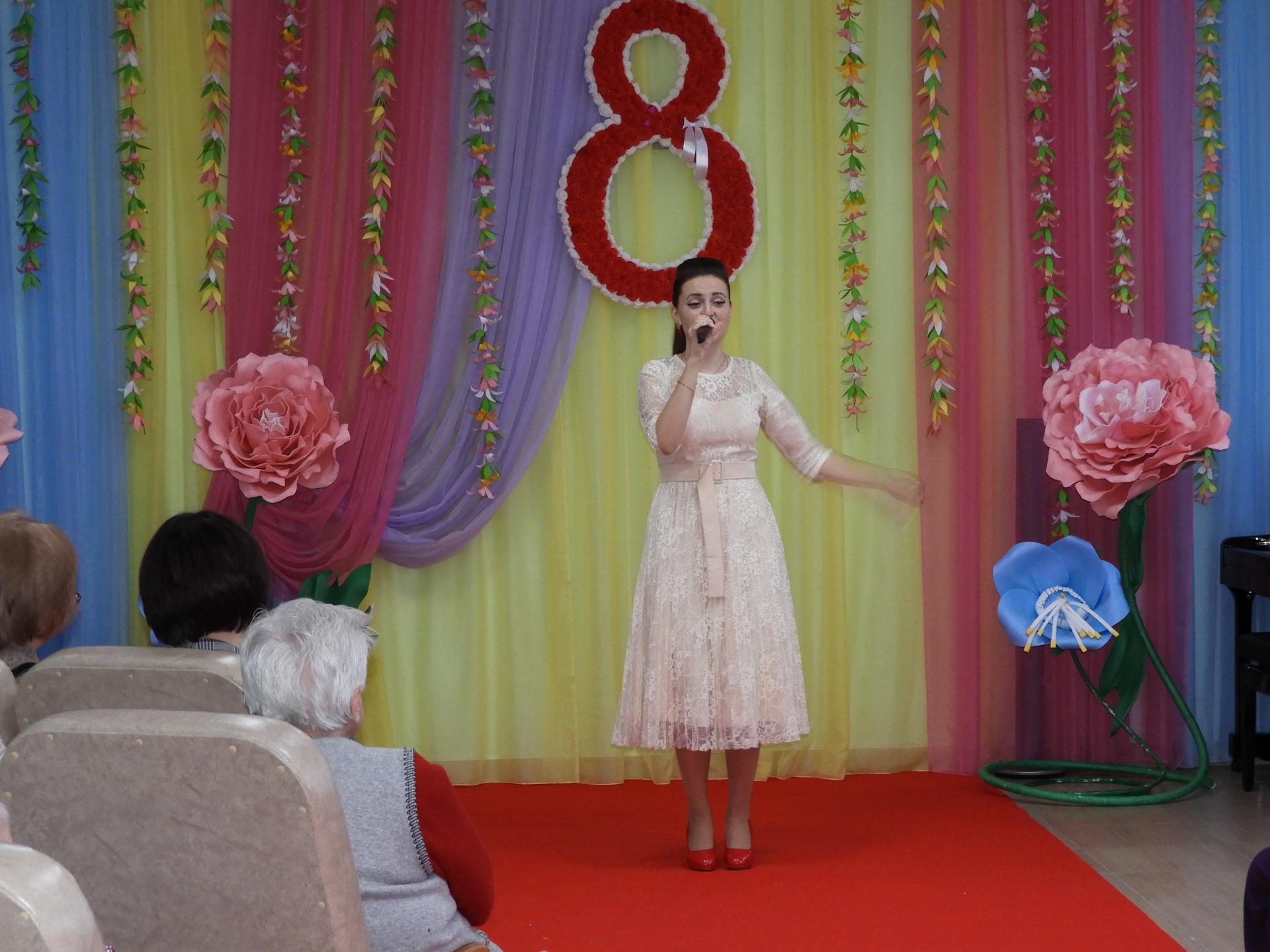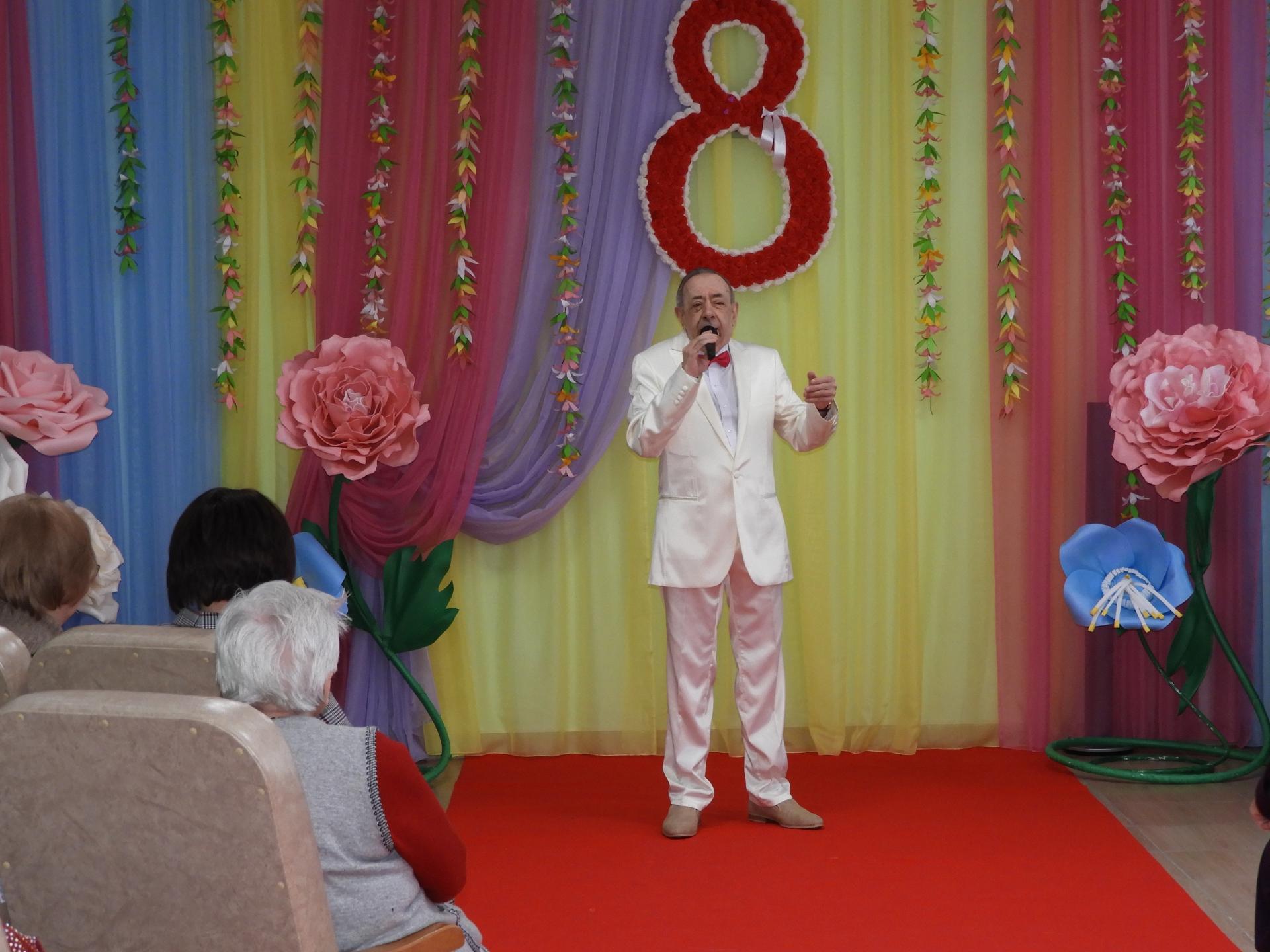В начале праздничного концерта с поздравлением и наилучшими пожеланиями здоровья, радости и счастья выступила директор Пансионата Е.А. Сергеева. А дальше происходили настоящие чудеса. Все, как будто бы, оказались в Париже на показе мод. По красной дорожке, под завораживающую музыку, юные модели грациозно дефилировали, как это полагается, и демонстрировали шикарные наряды. Они представили весеннюю коллекцию дизайнера, лауреата национальной премии Натальи Рязановой. В восторге были не только женщины, но и мужчины, всегда приятно посмотреть на красоту. После модной презентации праздник продолжила концертная программа. В исполнении солистов ГЦКиО «Спутник» Татьяны Маштаковой и Ольги Дмитриевой звучали песни «Лебедь белая», «Звёздное лето», «А он мне нравится». Музыкальные композиции, исполненные на саксофоне артистом муниципального духового оркестра Олегом Климковичем, просто очаровали зрительниц, а солист вокальной студии «Радуга» Дмитрий Вицукаев сразил всех женщин своим выступлением, исполнив песни «Луч солнца золотого», «Электричка», «Белые розы». Так же музыкальным подарком всех поздравил серебряный волонтёр Пансионата Пётр Гольденберг, а жительница Валентина Щелучкова прочла стихотворение своего любимого поэта А. Дементьева «Мамины руки».