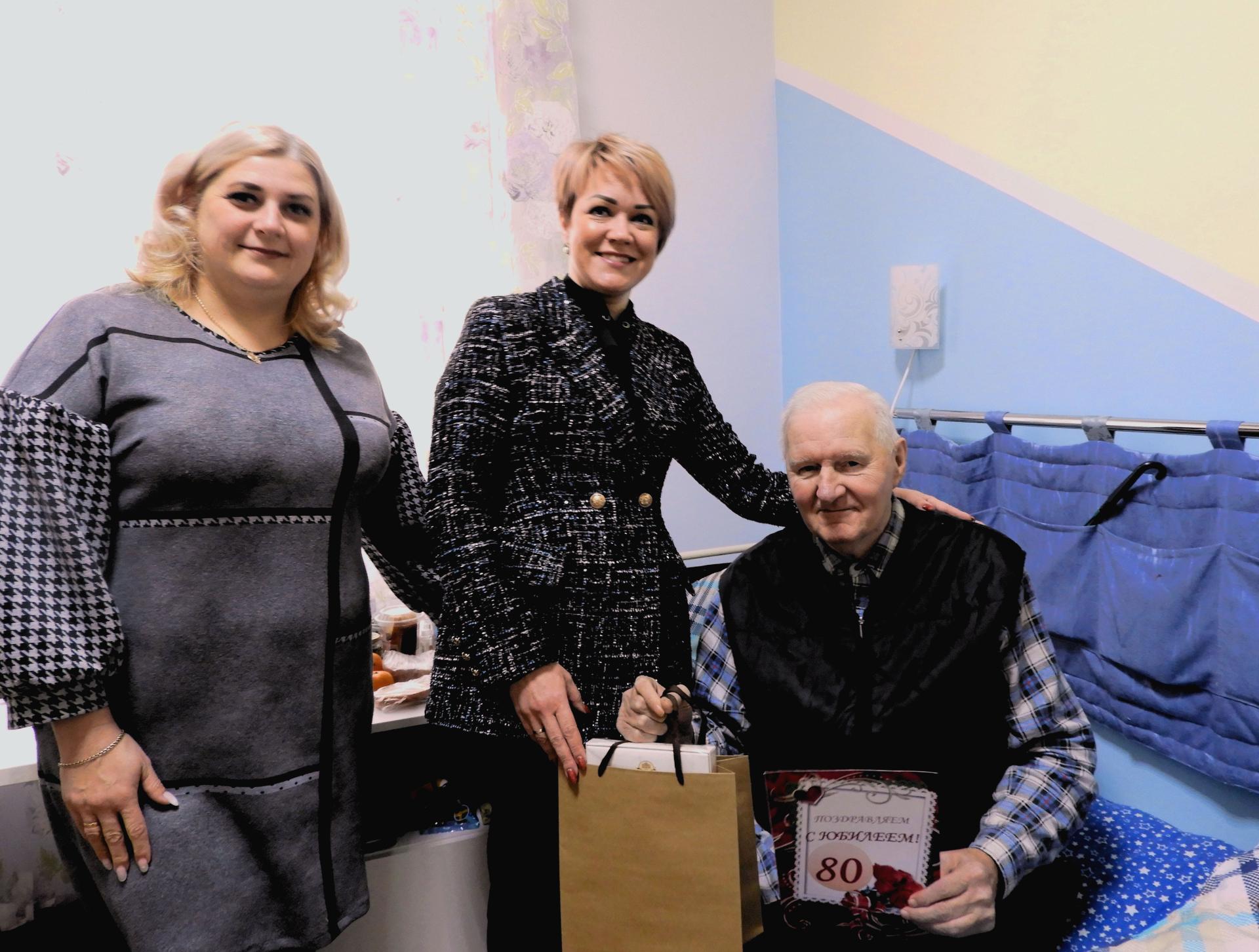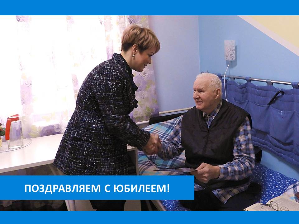 Свою почтенную дату он встретил в хорошем настроении. В этот день юбиляр принимал поздравления и от жителей, и от сотрудников Пансионата. С поздравлением к Владимиру Фёдорович обратилась директор Е.А. Сергеева, желая крепкого здоровья и долгих лет жизни. По традиции юбиляра одарили подарками, а по внутреннему радио Пансионата прозвучала песня в исполнении Олега Газманова «Мои ясные дни».