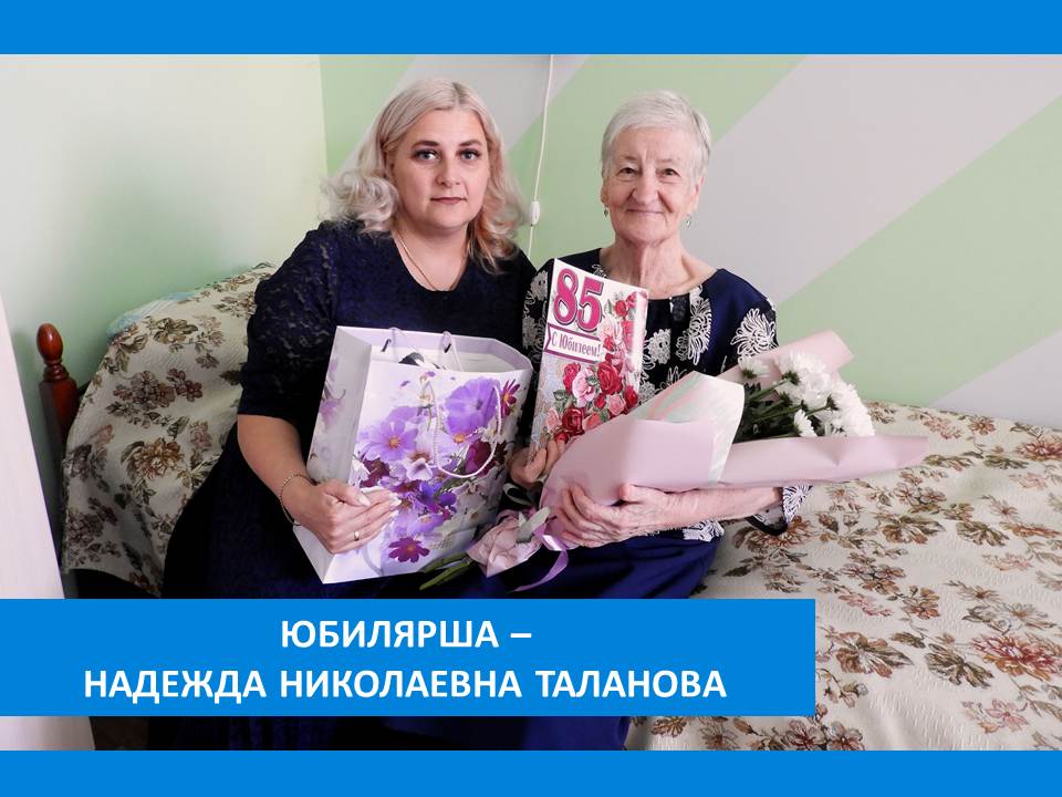 1 октября свой 85-летний юбилей отметила жительница Вязниковского Пансионата Надежда Николаевна Таланова. Такой юбилей — очень важное и значимое событие, ведь далеко не каждому суждено встретить столь почтенный возраст.