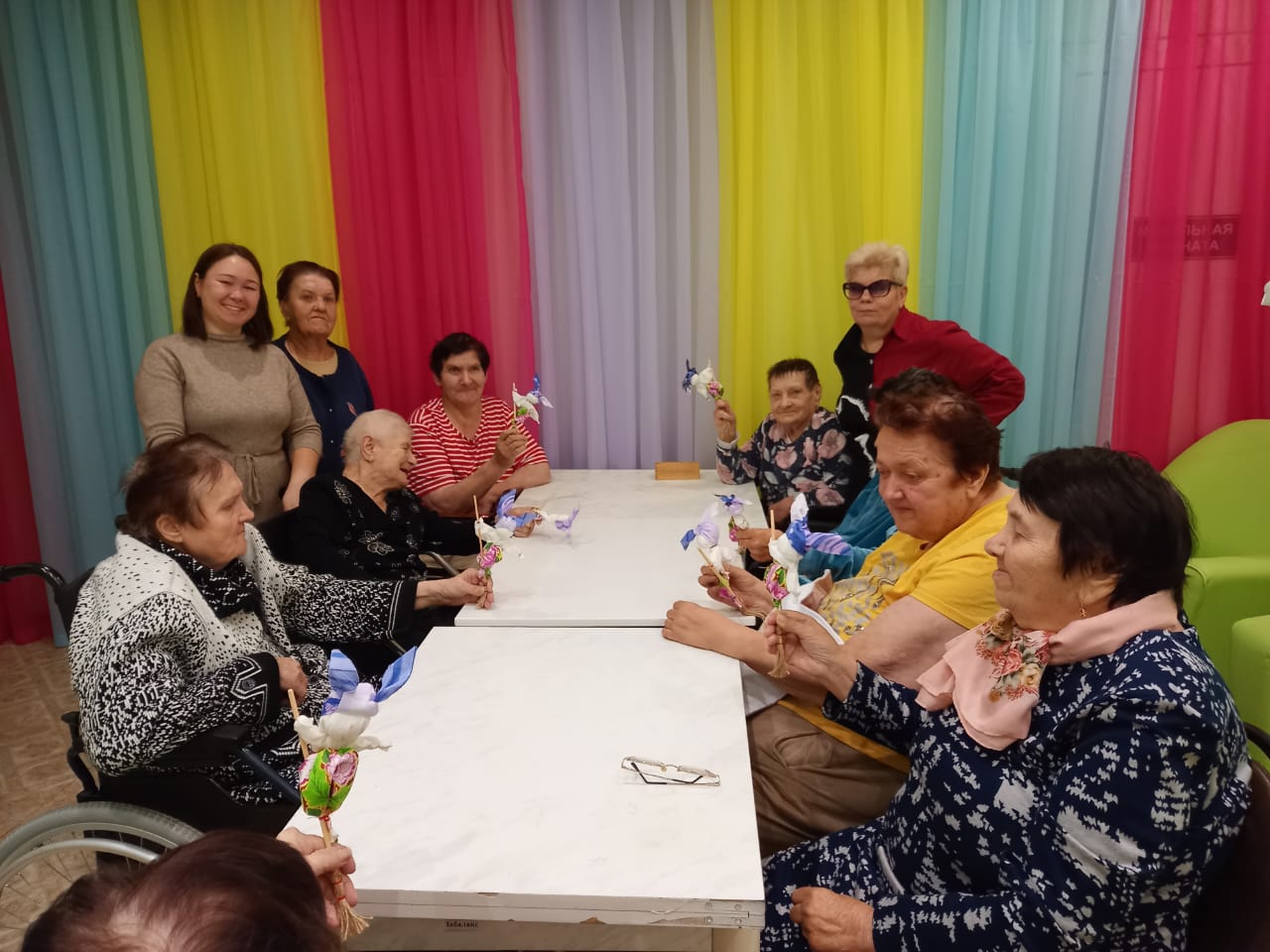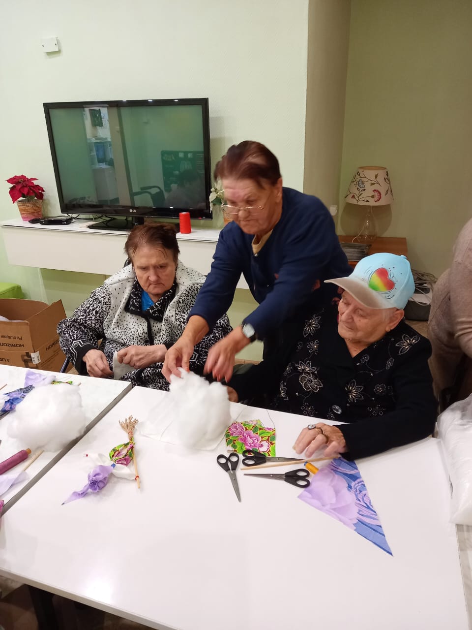 Серебряные волонтеры клуба «ДоброSTAR» Вязниковского Пансионата Наталья Игоревна Идрисова и Надежда Викторовна Уханова навестили своих друзей в отделении милосердия с. Сарыево и провели для них мастер-класс по изготовлению куклы-мотанки. За приятной беседой изготовили забавных Бабок-Ёжек, и у каждой она получилась особенной. Вспоминали сказки с данным персонажем и свой сценический опыт в роли Бабы-Яги. От души насмеялись, и на веселой ноте распрощались, наметив следующую встречу.