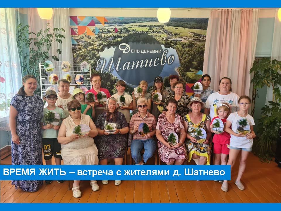 6 июля в д. Шатнево состоялась очередная информационно-практическая встреча в рамках проекта «ВРЕМЯ ЖИТЬ», поддержанного конкурсом «Серебряный возраст 2022-2023».