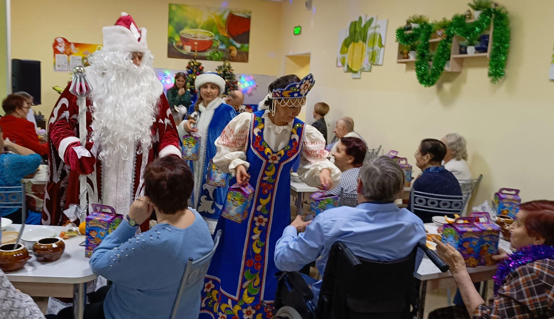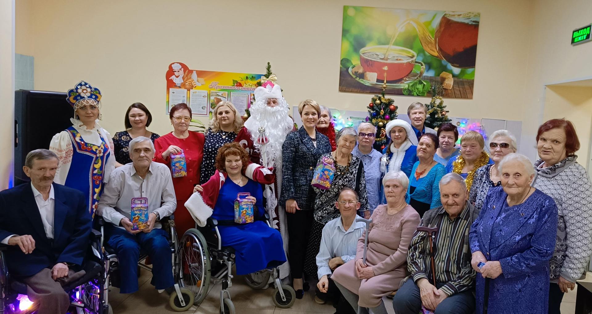 В сказку добра, радости и счастья попали жители Вязниковского Пансионата. 28 декабря всех вместе собрал традиционный новогодний огонёк. Сказочно украшенный зал, новогодние гирлянды, сверкающие огоньки, нарядные ёлки, - всё это создавало атмосферу кокой-то необыкновенной и завораживающей истории. С поздравительными словами выступила директор – Екатерина Александровна Сергеева, желая всем здоровья, успехов и счастья. Так же поздравить жителей Пансионата пришли студенты-волонтёры Вязниковского технико-экономического колледжа. Свои пожелания они подкрепили сладкими подарками.