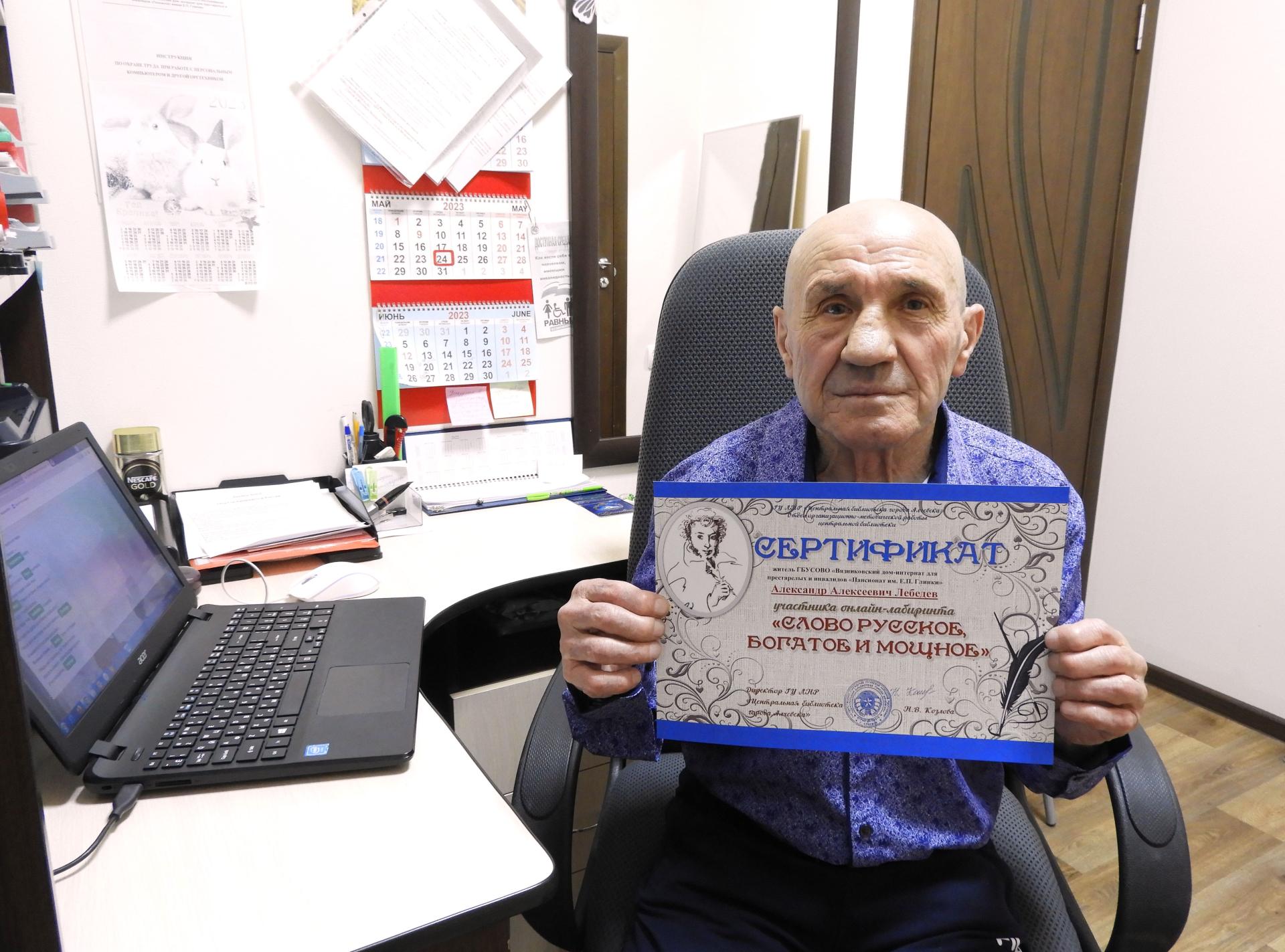 24 мая в День славянской письменности и культуры житель Вязниковского Пансионата Александр Алексеевич Лебедев принял участие в онлайн-викторине «Слово русское, богатое и мощное», организованной Центральной библиотекой города Алчевска (Луганская Народная Республика). Вопросы были обращены к истокам русского слова и традициям. Так же вспомнили крылатые фразы великих русских писателей и стихотворение А.С. Пушкина «Я памятник себе воздвиг нерукотворный». Пройдя 3 тура и ответив на все вопросы, Александр Алексеевич получил не только сертификат, а ещё и удовольствие от участия, т.е. от интересного и познавательного процесса.