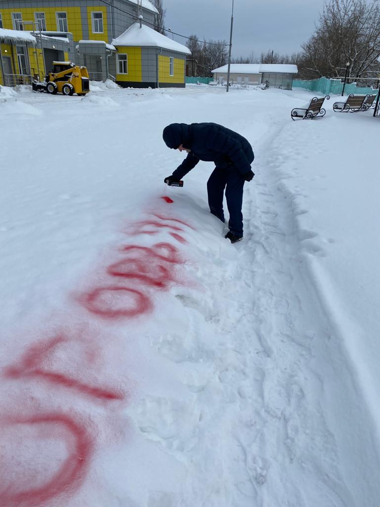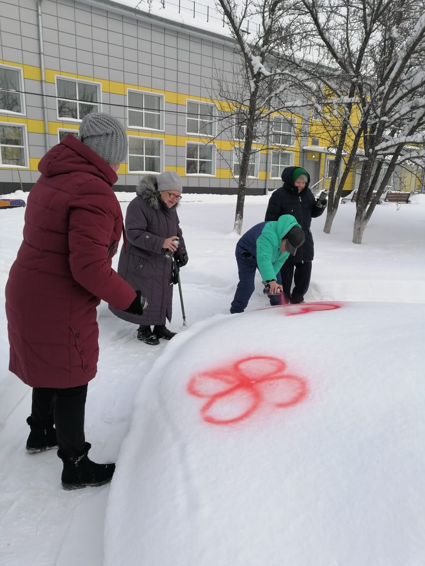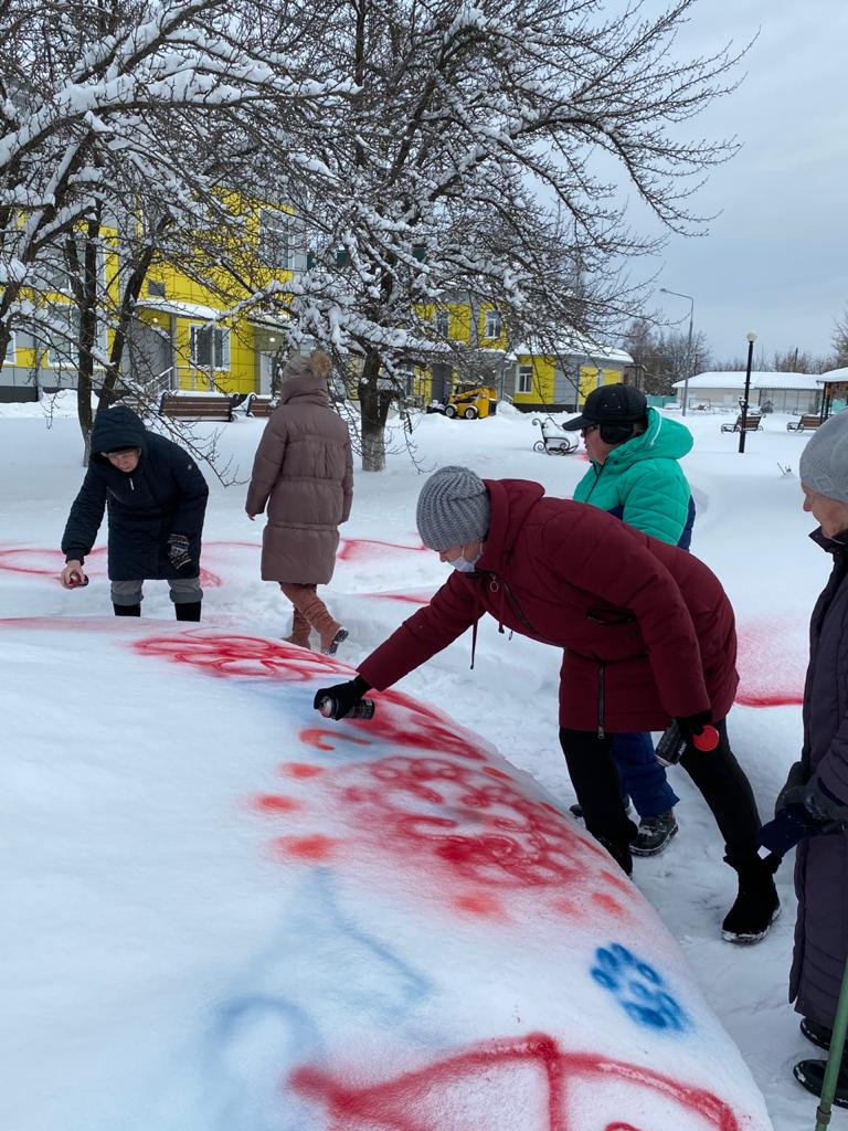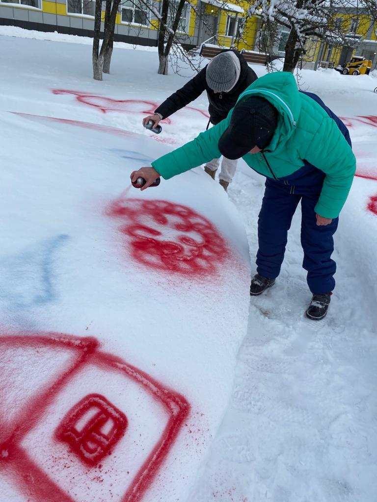 Жители нашего Пансионата ни в чем себе не отказывали, фантазировали, рисовали, писали послания, смеялись. В итоге сугробы окрасились множеством прекрасных художественных творений.