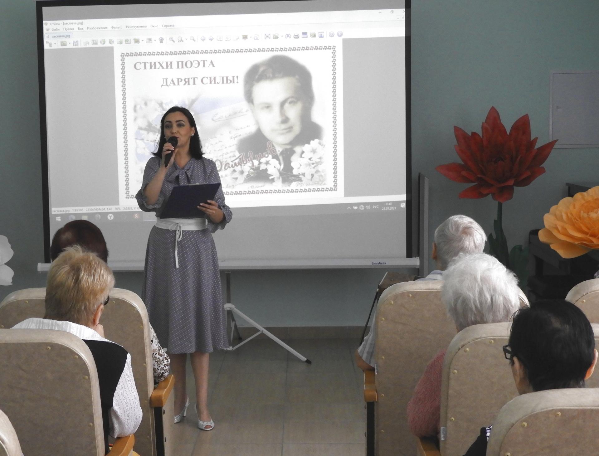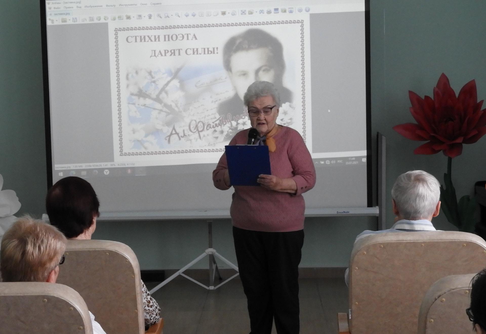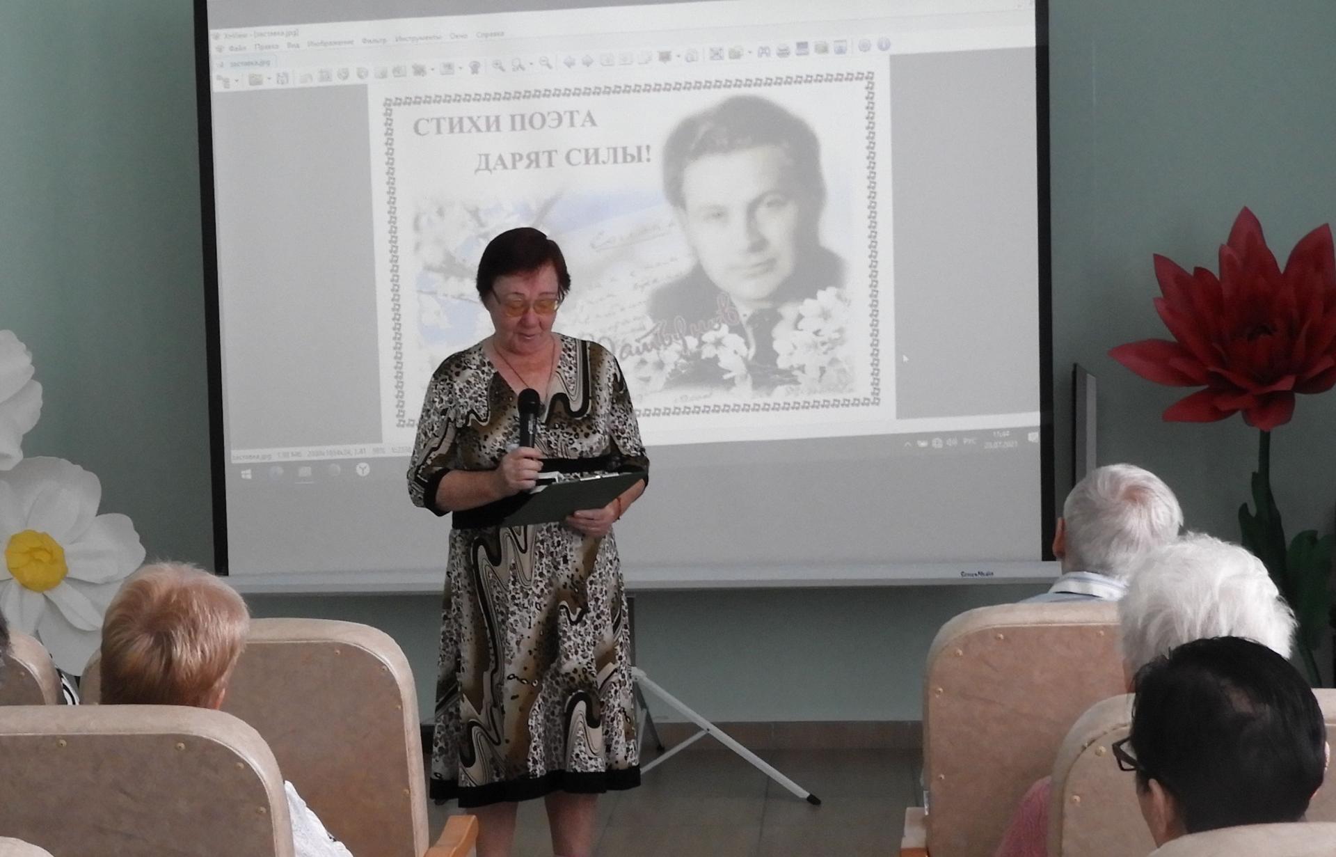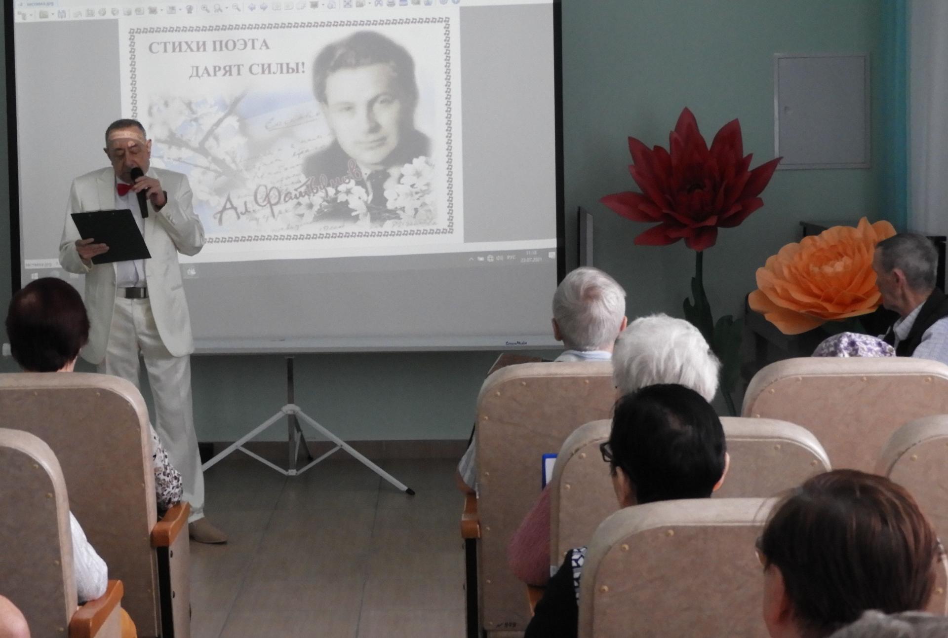 23 июля в Вязниковском Пансионате прошло традиционное мероприятие, посвящённое творчеству А.И. Фатьянова. В этом году, как и в прошлом, гостей не было, поэтому жители Пансионата сами приняли активное участие в проведении музыкально-поэтической гостиной «Стихи поэта дарят силы!». В ходе мероприятия вспомнили биографию поэта, послушали в его исполнении запись песни «Шумит под ветром Ладога». Среди стихов прозвучали – «Дождик», «Земляки», «Знатный слесарь», «Вновь к черёмухе душистой» и др., а из песен (каждая подхватывалась зрителями) – «Три года ты мне снилась», «На солнечной поляночке», «На крылечке твоём», «Когда весна придёт, не знаю». На экране во время мероприятия демонстрировались фотографии А.И. Фатьянова в разные годы его жизни, а так же приятно было посмотреть отрывок из кинофильма «Солдат Иван Бровкин», где исполнялась песня «Где ты, ромашка моя». Но больше всего всем понравилось общее исполнение в караоке песни «Потому что мы пилоты», где, в то же время, каждый желающий почувствовал себя солистом (микрофон «ходил по залу»). Завершилось мероприятие презентацией «Из истории Фатьяновского праздника» под песню «В городском саду играет духовой оркестр».