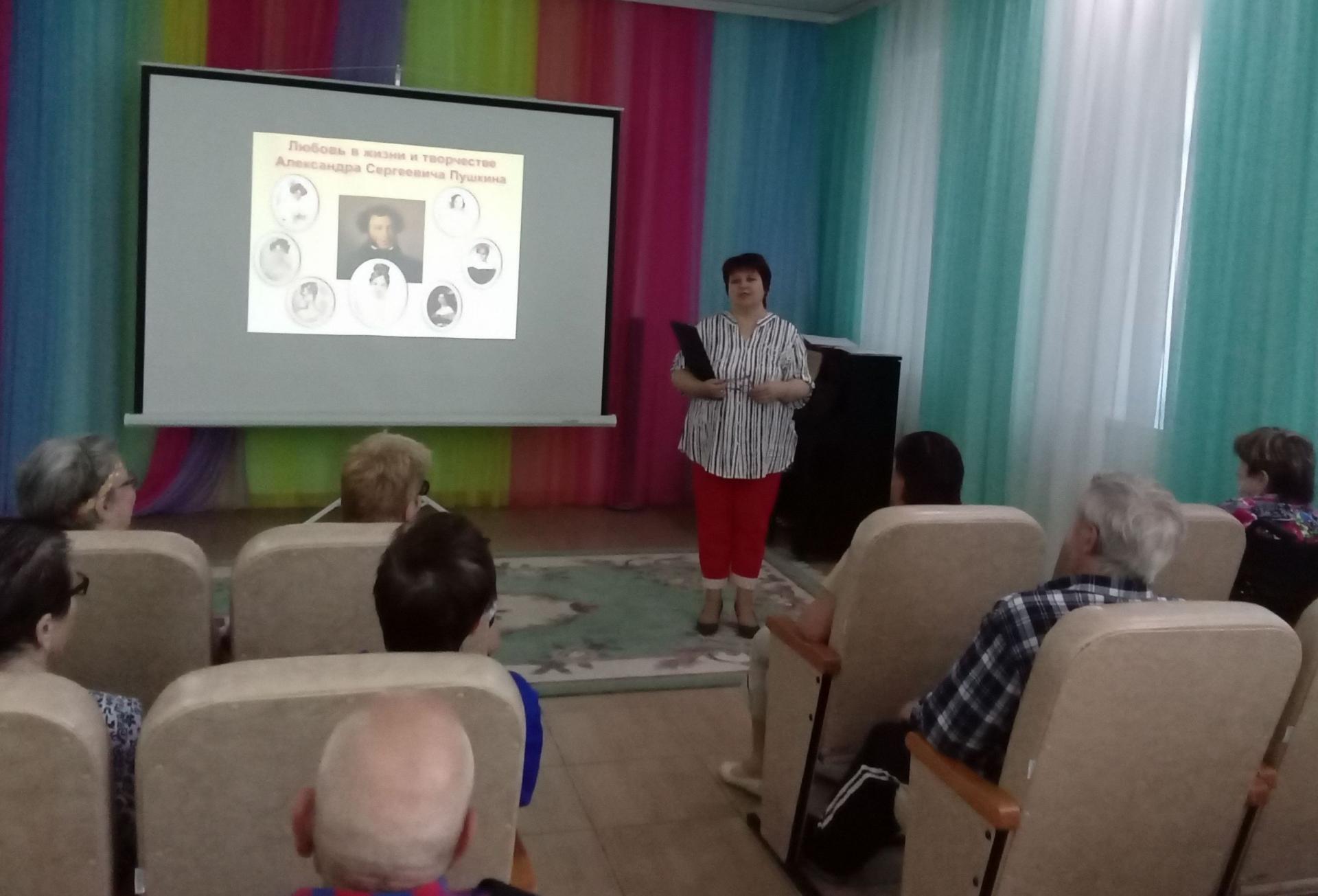 В преддверии дня рождения А.С. Пушкина в Вязниковском Пансионате прошло мероприятие, посвящённое определённой теме из жизни поэта - «Женщины Пушкина». Великий светоч русской литературы жил в эпоху необыкновенных красавиц — и был на редкость влюбчив. В жизни поэта было немало увлечений: и мимолетных, и страстных, и таких, которые буквально переворачивали его жизнь. И каждое рождало в душе поэта стихотворения. Именно об этом интересную композицию провели сотрудники информационно-правового библиотечного центра «Интеллект». Они представили презентацию о самых ярких женщинах в судьбе Александра Сергеевича, вдохновивших его на бессмертные строки. Так же, в ходе мероприятия, звучали стихи и романсы, посвящённые музам поэта.