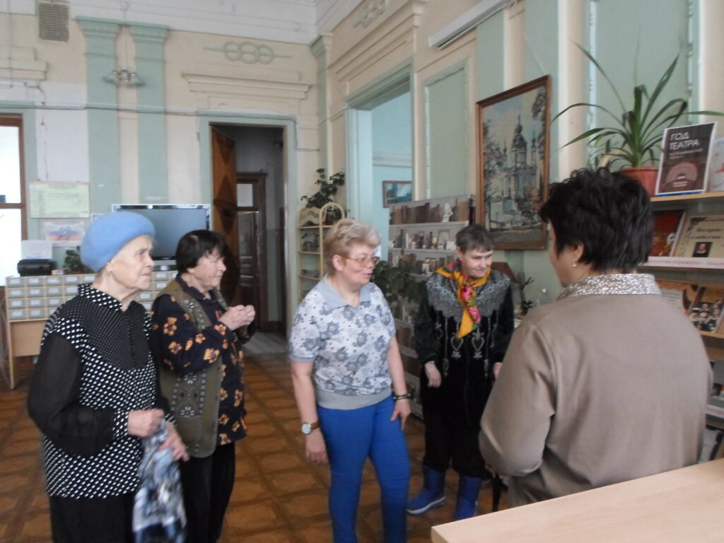 За своё пребывание в библиотечном центре, жители Пансионата успели пройтись по учреждению и ознакомиться с оформленными выставками, посвящённые и Году театра, и 100-летию нашего земляка поэта-песенника А.И. Фатьянова, и, конечно же, Дню космонавтики.