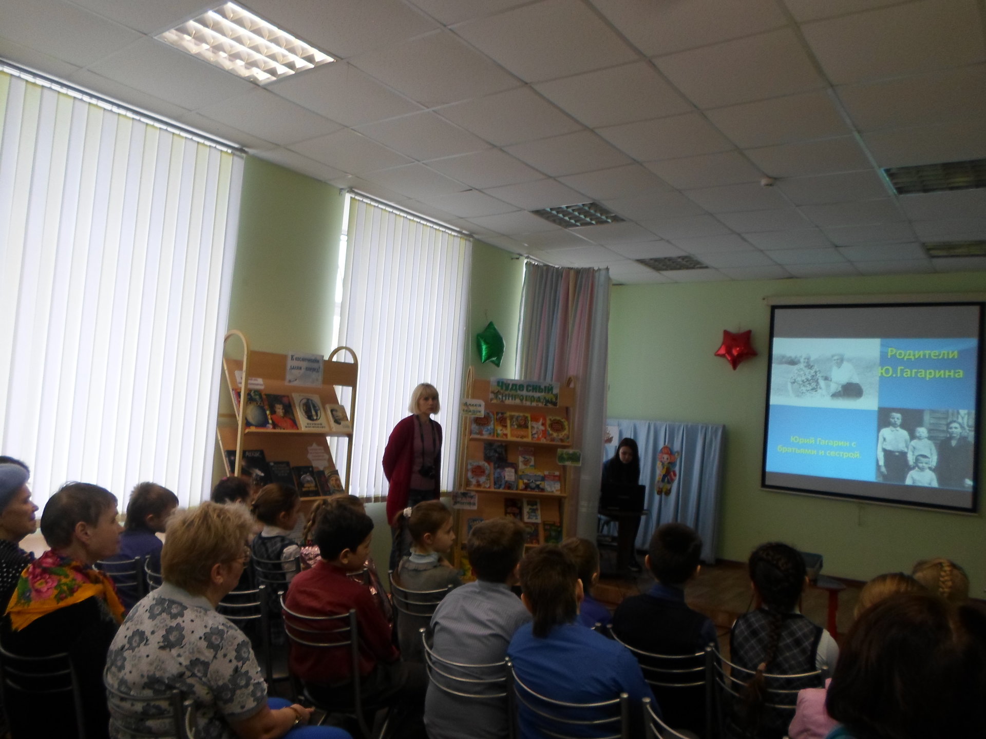 Зрители с удовольствием послушали биографию первого человека в мировой истории, совершившего полёт в космическое пространство. На мероприятии были предоставлены документальные видеоматериалы, речь Ю.А. Гагарина перед полётом, воспоминания родных и близких, фотографии, песни, стихи. В завершении программы была проведена викторина, которая включала вопросы по пройденной теме.