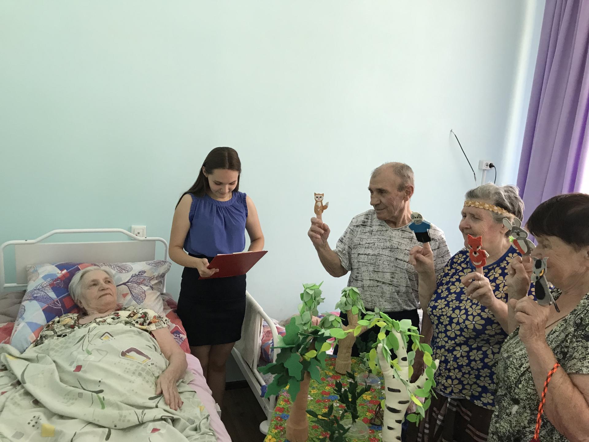 Серебряные волонтеры Пансионата под руководством психолога, вновь и вновь радуют получателей социальных услуг отделения милосердия постановкой театрализованных представлений, как эффективного инструмента социально-психологической помощи, задача которого состоит в снижении у жителей психо-эмоционального напряжения, тревожности, повышения коммуникативной способности.
