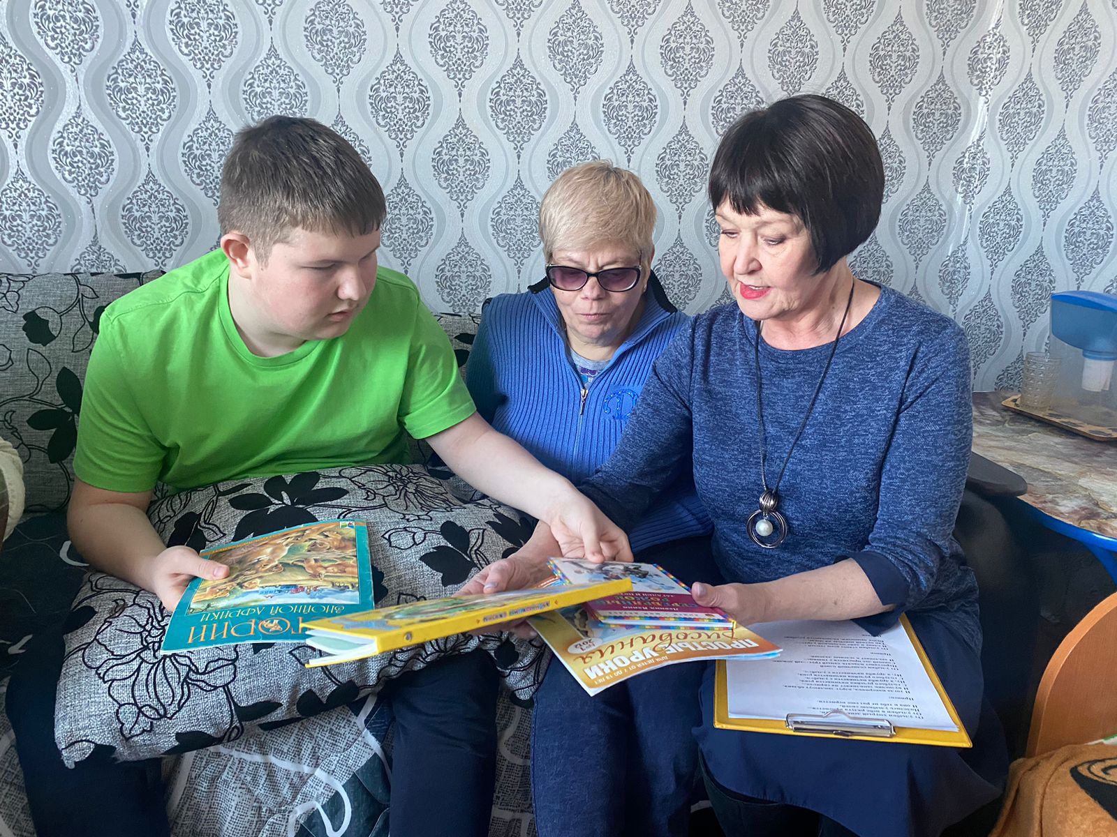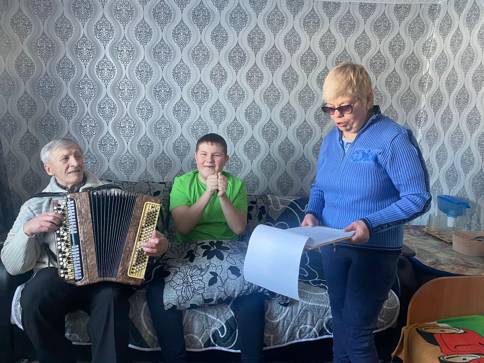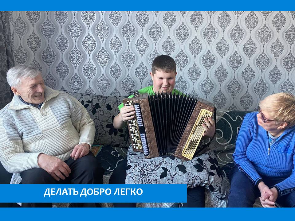 В рамках благотворительного марафона «Живи ярко – делай добро!», посвященного Дню рождения Е.П. Глинки, серебряные волонтеры пансионата Павел Глебов и Наталья Идрисова посетили в семью Клиповых и подарили кроме книг небольшой концерт. Исполняли песни вместе с Максимом, который даже попрактиковался игре на баяне. Встреча получилась очень эмоциональной и теплой. Так что получилось как в одной из заповедей Елизаветы Глинки «Говорить с каждым на его языке» и наши волонтеры не только поговорили, но и спели, а так же договорились о новой встрече.
