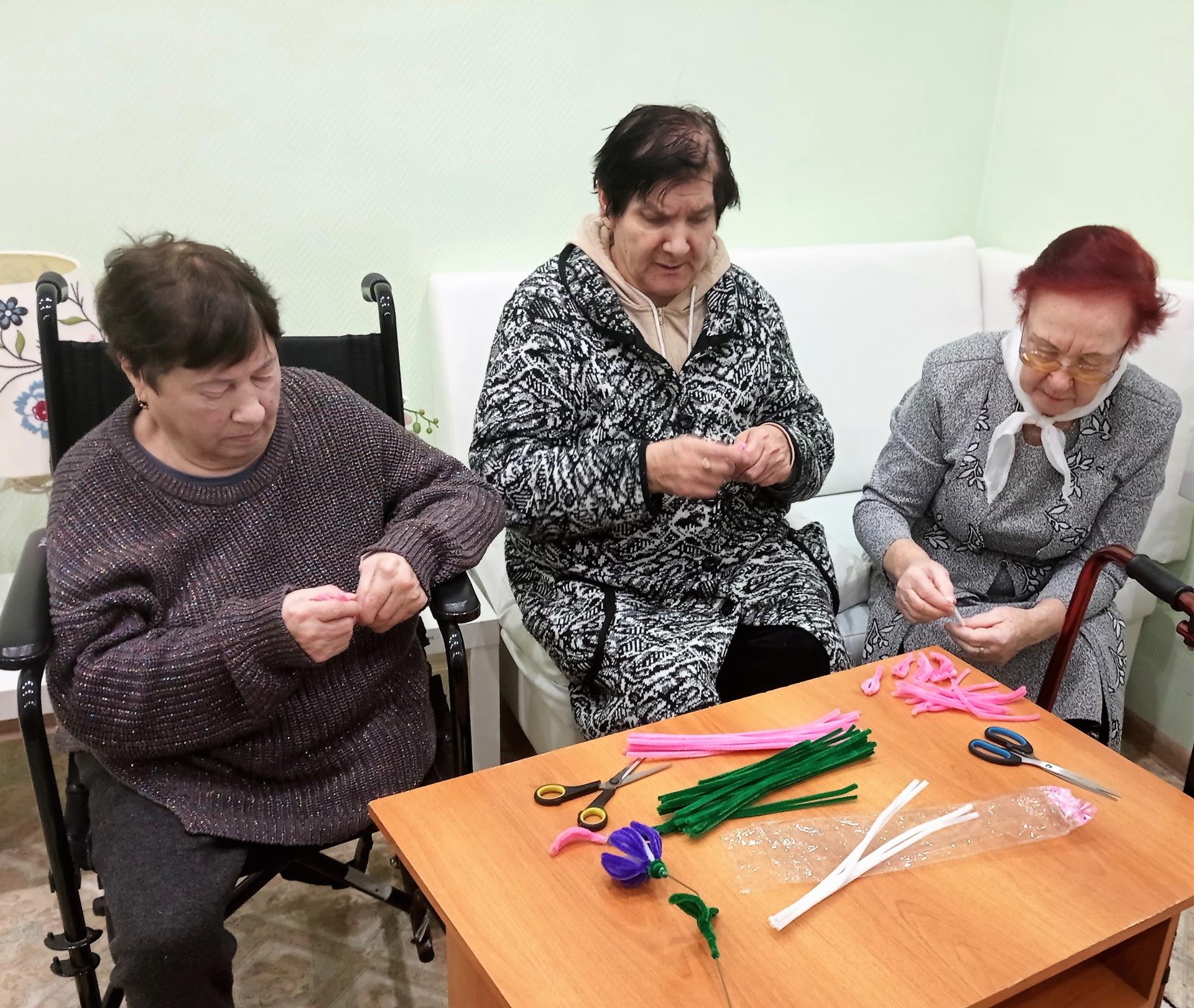 Накануне 8 марта – женского праздника весны серебряные волонтеры клуба «ДоброStar» посетили милых дам проживающих в отделении милосердия с. Сарыево. Мастерицы подготовили и провели мастер-класс по созданию очаровательных пушистых цветов – тюльпанов из синельной проволоки. В такой праздник каждая женщина должна быть с цветами, а цветы, сделанные своими руками особенно незабываемы.