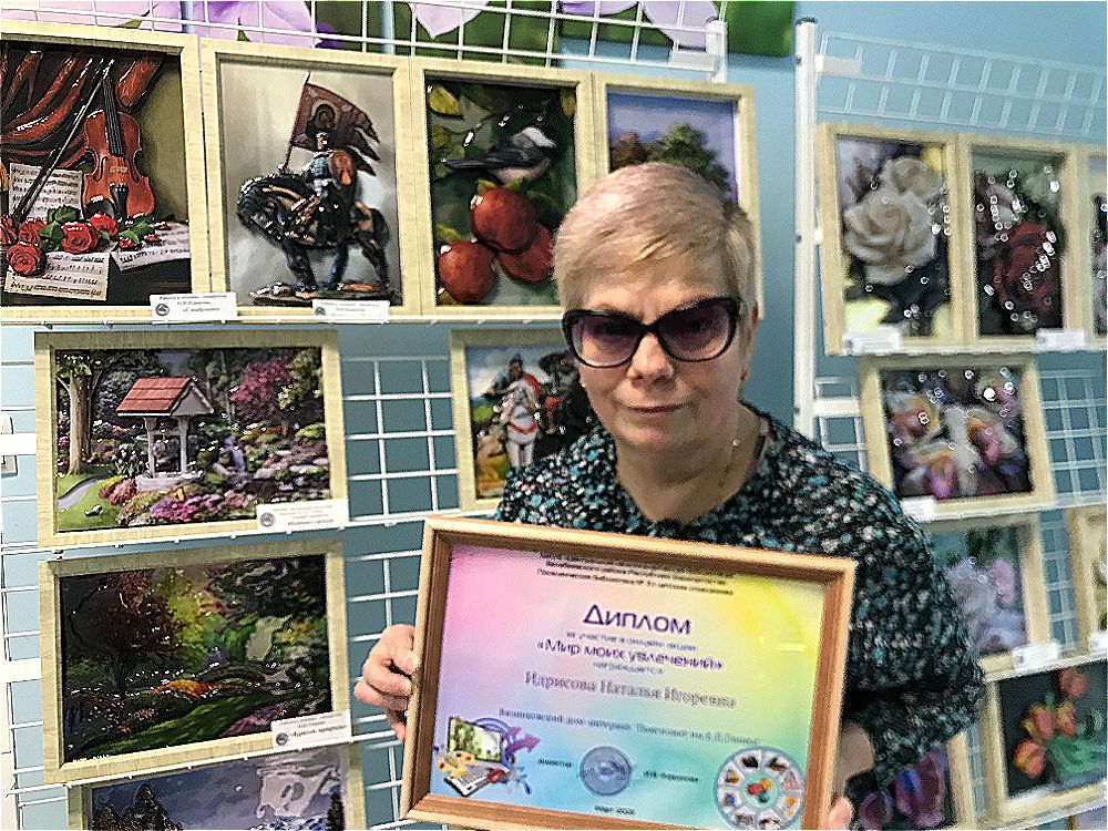 Наталья Идрисова, жительница «Пансионата им.Е.П.Глинки» отмечена дипломом за участие в онлайн-акции «Мир моих увлечений». Занимаясь рукоделием, Наталья освоила немало новых навыков. Это и новые техники, и новые инструменты, и новые виды творчества в принципе. Это очень сильно расширило ее кругозор и значит, что теперь можно не только радовать людей своими изделиями ручной работы, но и обучать других, кто хотел бы подняться до такого же уровня мастерства. Наташа входит в клуб добровольческой деятельности «ДоброSTAR», который создан из жителей пансионата и дает возможность научить творчеству других, что приносит радость и удовлетворение.